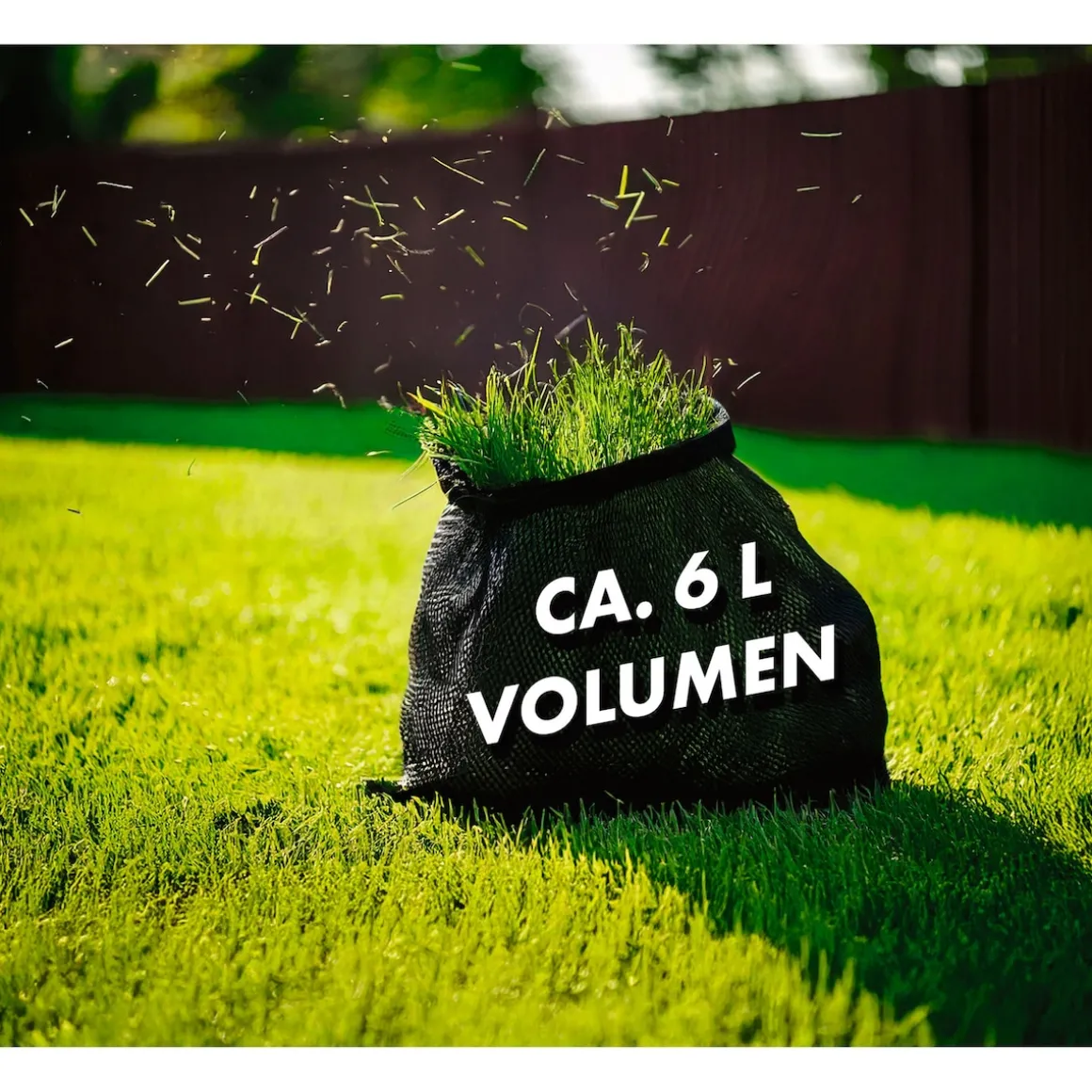 Dank des flexiblen Auffangnetzes mit einem Volumen von ca. 6 Litern wird das Schnittgut direkt aufgenommen – lästiges Zusammenrechen entfällt. Der kraftvolle 12V-Akku ermöglicht bis zu 25 Minuten kabelloses Arbeiten mit voller Bewegungsfreiheit. Der Trimmer erreicht 8000 Umdrehungen pro Minute, die langlebigen PA66-Klingen aus glasfaserverstärktem Kunststoff sorgen für ein sauberes, gleichmäßiges Schnittbild.