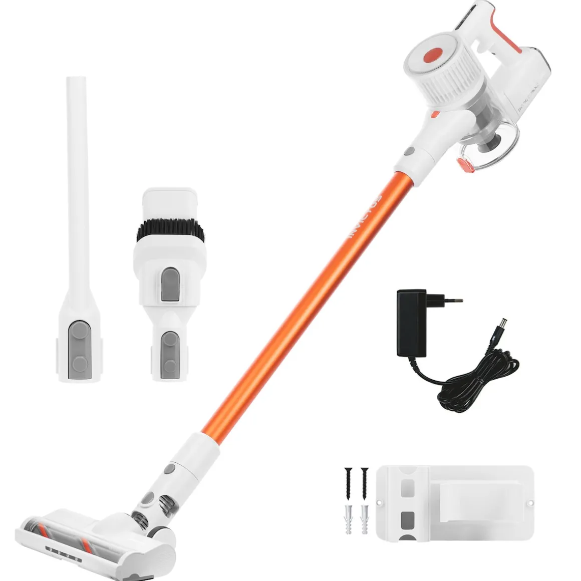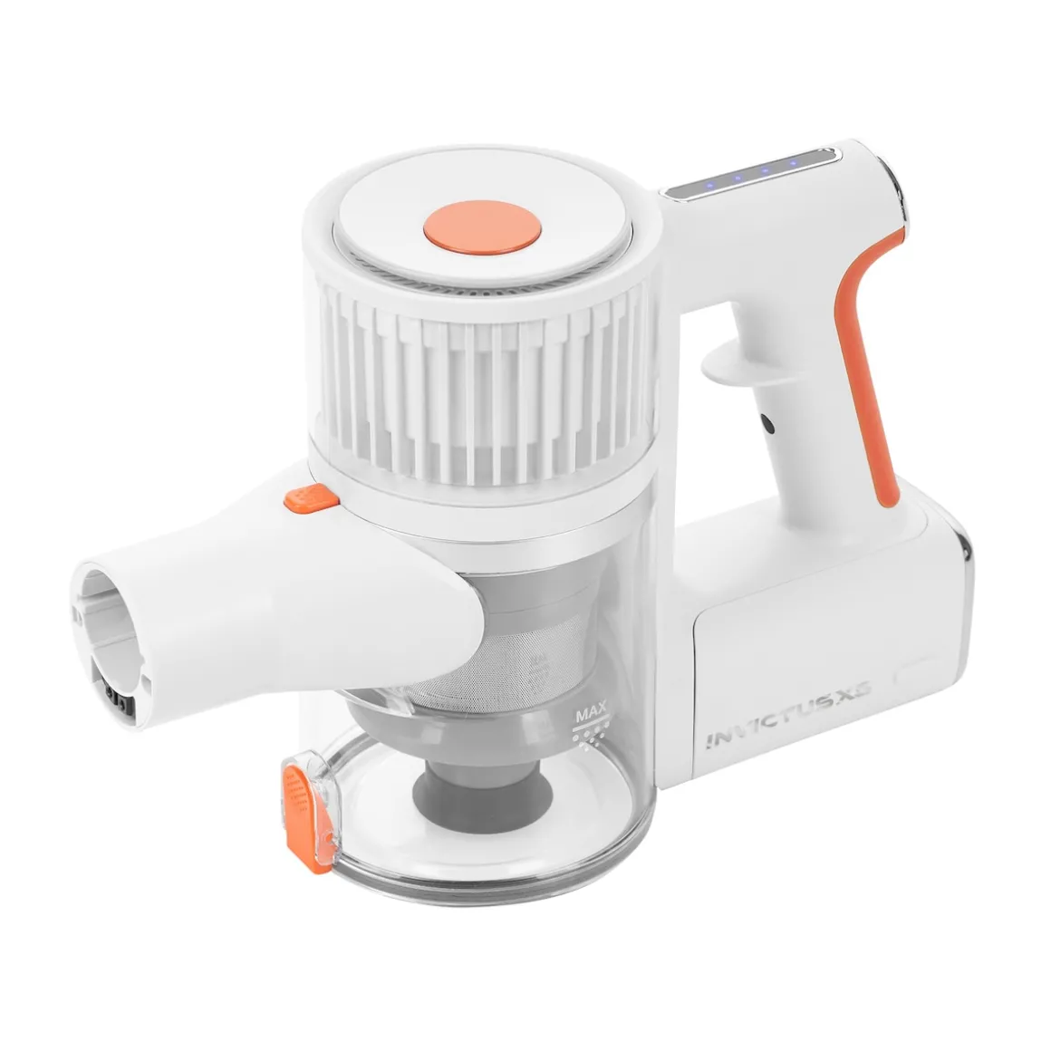 Lieferumfang: 1x Handgerät X5, 1x Staub-Behälter, 1x Vormotorfilter, 1x HEPA-Filter (Nachmotorfilter), 1x Zyklonfilter, 1x Motorisierte Elektrobürste, 1x Universal-Bürstenrolle, 1x Saugrohr, 1x Ladegerät, 1x Lithium-Ionen Akku, 1x Fugendüse, 1x Wandhalterung