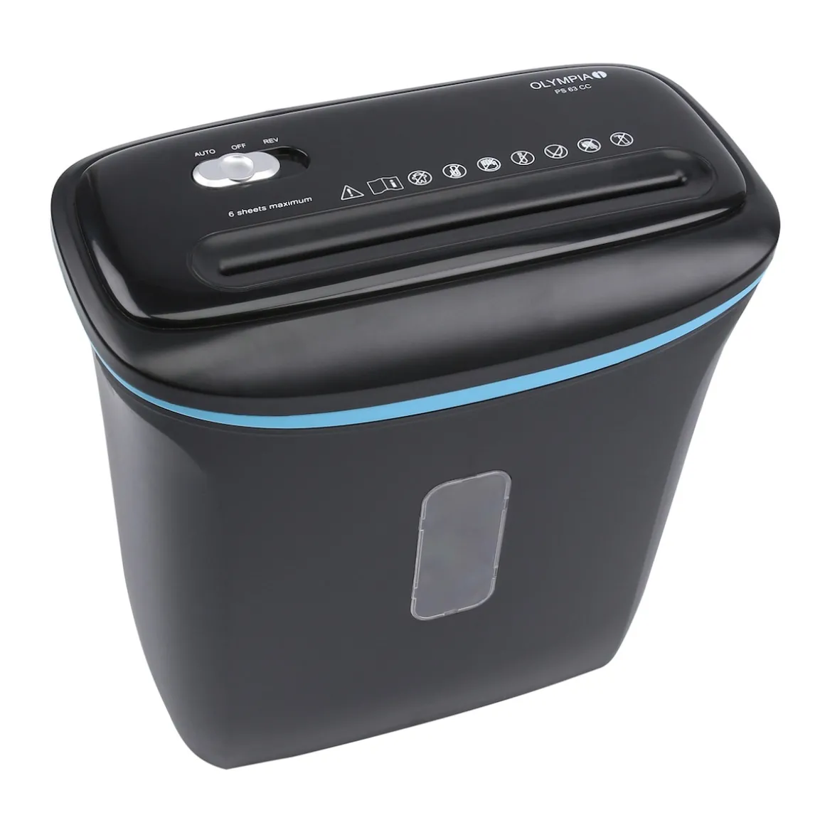 Vernichtet bis zu 6 Blatt 80 g/m²-Papier gleichzeitig. Mit Rückwärtslauf und Überhitzungsschutz. Für Eingabebreite bis DIN A4.