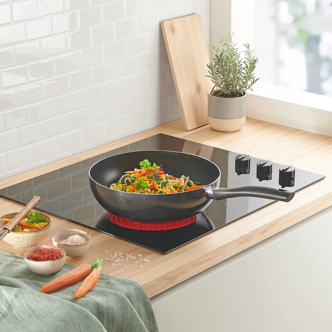 Rundum lecker: Dank optimaler Wärmeleitfähigkeit sorgt diese Wokpfanne für knackig-gesundes, fettarmes und energiesparendes Garen, Dünsten und Braten mit vollem Geschmack. Die hochwertige Antihaftbeschichtung und der ergonomische Pfannenstiel machen die Handhabung spielend einfach.