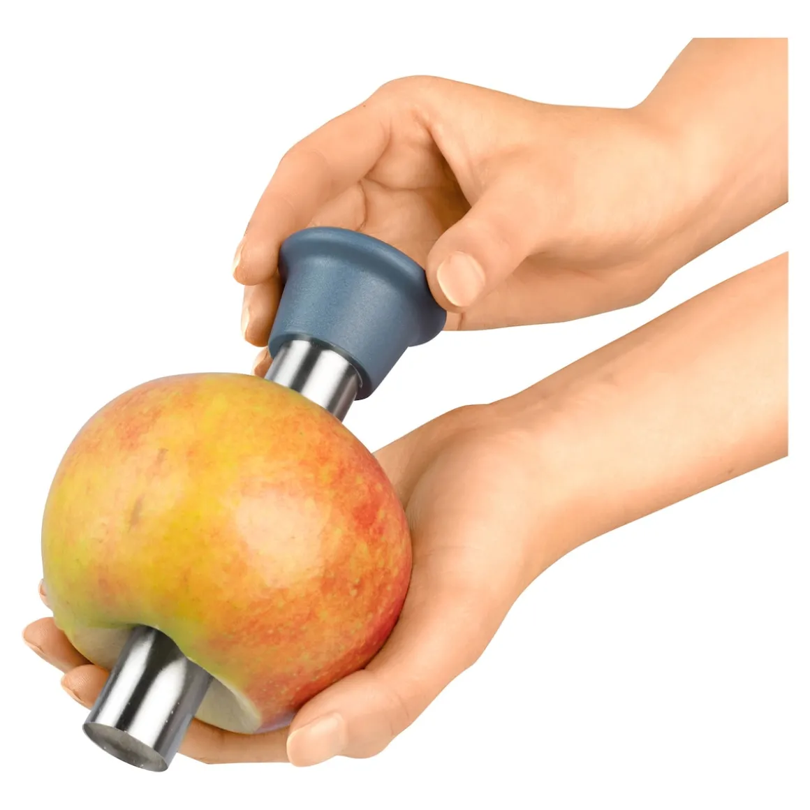 Dieser handliche Entkerner sollte in keiner Küche fehlen: Einfach am Apfel ansetzen, nach unten drücken und herausziehen – schon ist der Apfel bereit zum Genießen.