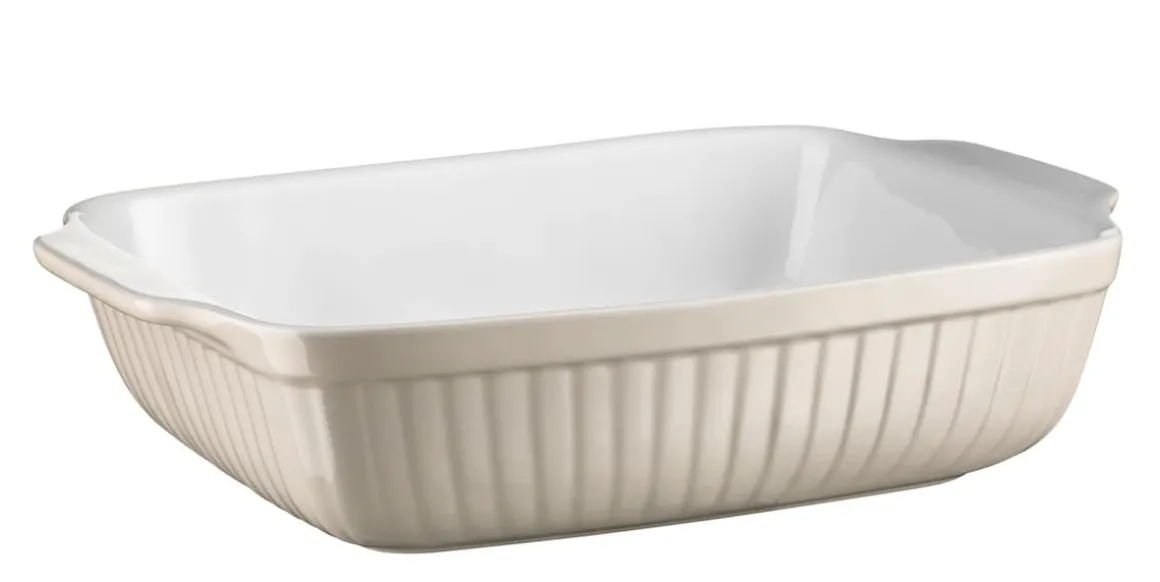 Diese vielseitig einsetzbare eckige Auflaufform aus dickwandiger Keramik macht dank ihres wunderschönen Retro-Designs nicht nur in Ihrem Backofen, sondern auch auf Ihrem Esstisch eine hervorragende Figur.Die Auflaufformen der Serie Kitchen Time sind aus hochwertigem Steinzeug (einer besonders harten Form der Keramik) gefertigt und dadurch äußerst pflegeleicht. Im Gegensatz zu Glasformen bleibt die Glasur von Keramikformen dauerhaft schön, da keine Lebensmittelrückstände eingebrannt werden. Im Gegensatz zu beschichteten metallenen Formen wiederum enthält glasierte Keramik keine Schadstoffe, die bei hohen Temperaturen ausgasen können. Außerdem ist glasierte Keramik absolut kratz- und schnittfest und leitet die Wärme Ihrer Speisen deutlich langsamer nach außen ab als etwa Aluminium. Bitte beachten Sie: Um eine objektive Vergleichbarkeit sicherzustellen, beziehen sich unsere Füllmengenangaben auf eine randvolle Befüllung. Vermeiden Sie Temperaturschocks, da die Formen ansonsten brechen könnten (etwa, wenn Sie diese direkt aus dem heißen Backofen auf einer kalten Stein-Arbeitsfläche platzieren). Dieses Set wird in einer vielfach auf Bruchsicherheit getesteten Versandverpackung versendet.