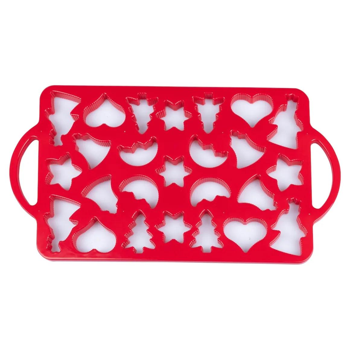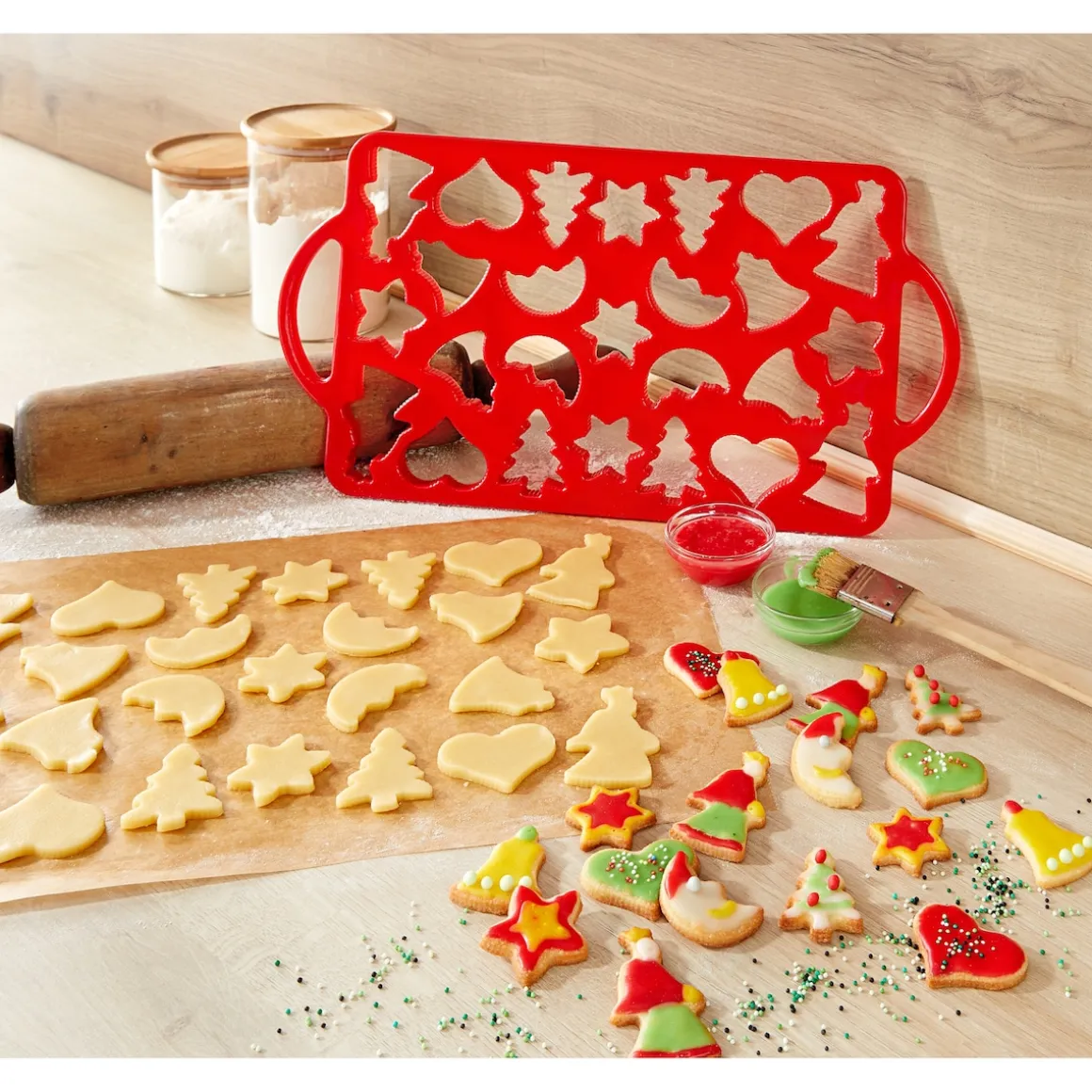 Mit dieser praktischen Schablone backen Sie Plätzchen in Rekordzeit! Statt jedes Plätzchen einzeln auszustechen, formen Sie gleich 25 Plätzchen in einem Arbeitsgang – so schnell und einfach war Plätzchenbacken noch nie.