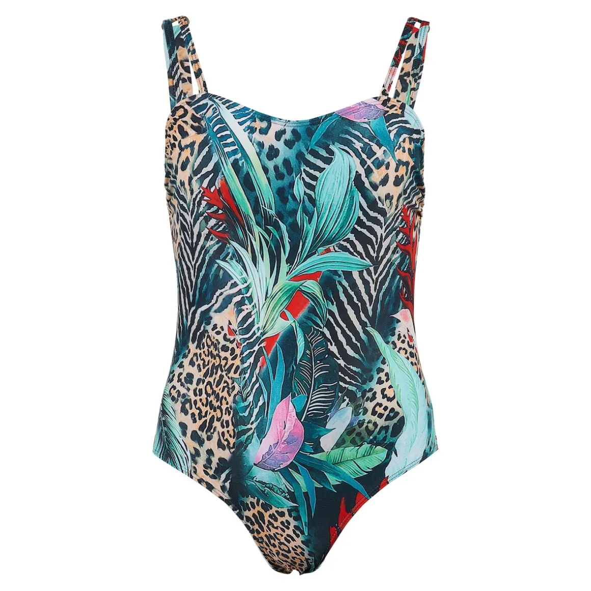 Badenixen aufgepasst: Dieser Badeanzug ist ein absoluter Blickfang. Dank seinem aufregenden Print gelingt Ihnen ein topmodischer Auftritt – am Strand, im Schwimmbad oder am Pool. Mit verstellbaren Trägern und herausnehmbaren Cups.