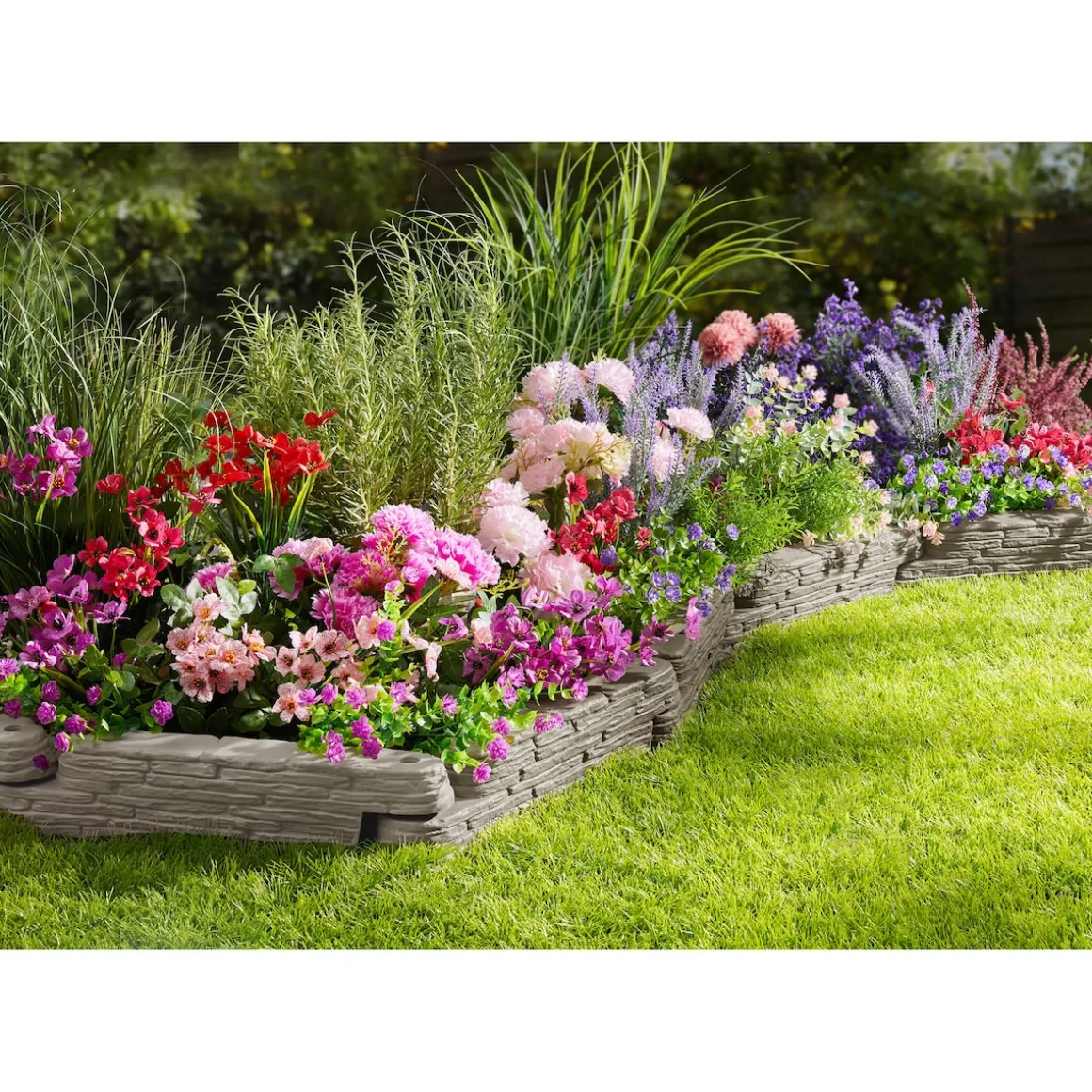 Stein auf Stein war gestern. Mit dieser Beetbegrenzung in täuschend echter Stein-Optik bringen Sie Ihre Pflanzenpracht im Handumdrehen perfekt zur Geltung. Einfach zusammenstecken, ob gerade oder „um die Ecke“!