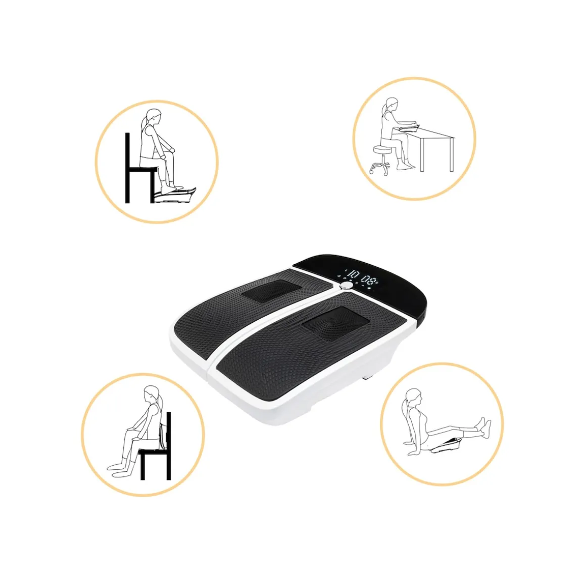 Der Beintrainer kann die Schmerzen in müden Beinen lindern und Füßen, verbessert die Durchblutung und erhöht die Muskelkraft durch das Vibrationssystem und die Fähigkeit, sich perfekt an die Fußsohle anzupassen. Darüber hinaus lindert das Fußmassagegerät auch Beschwerden durch Krampfadern. Sie können das Gerät mit 20 Geschwindigkeiten und 5 verschiedenen Programmen nach Ihren Wünschen einstellen. Für zusätzliche Vorteile können Sie die Akupressurmassageköpfe für eine entspannende Fußmassage einschalten. Mit der Fernbedienung können Sie Geschwindigkeit, Intensität und Programm einfach einstellen, ohne aufstehen zu müssen.