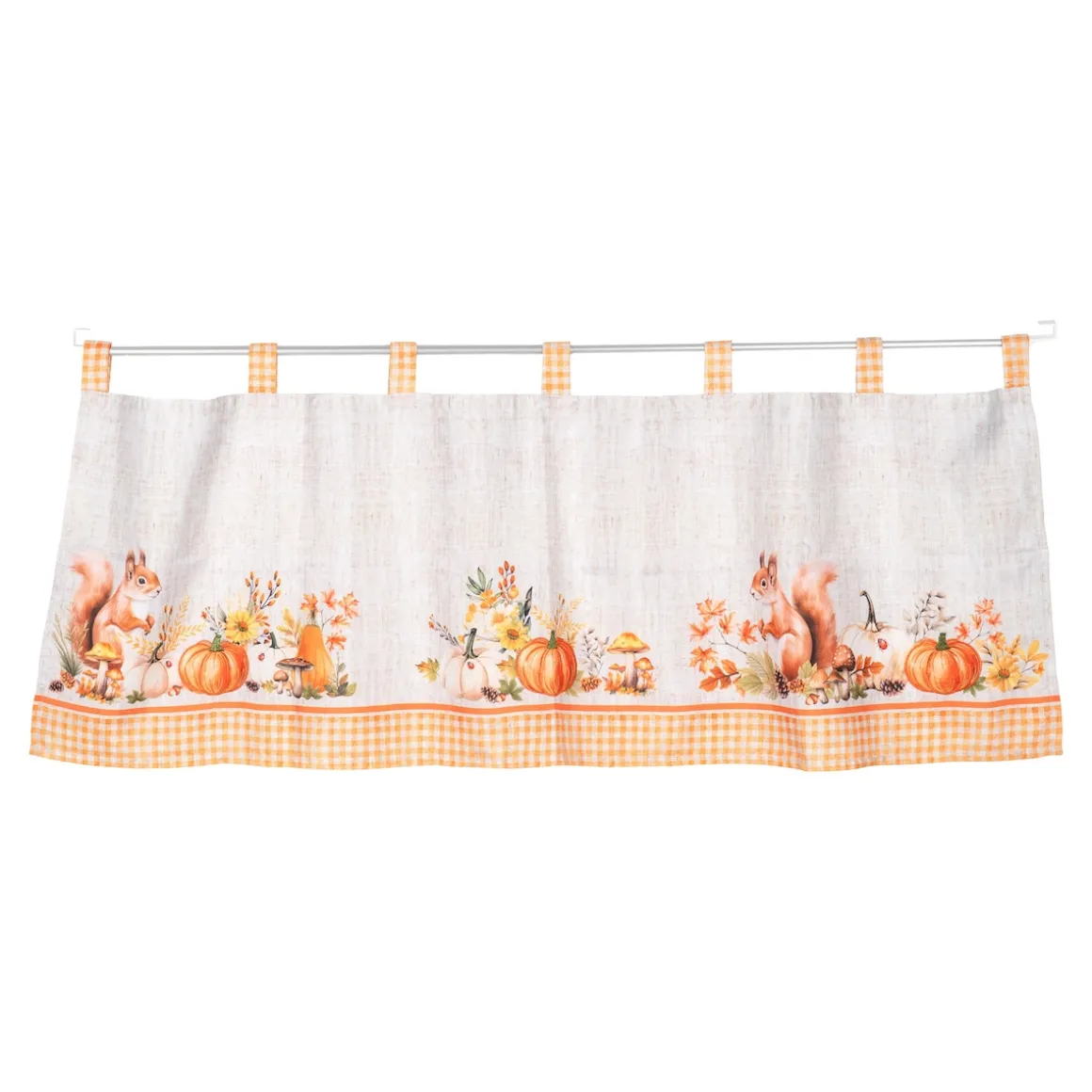 Diese Bistrogardine ist detailverliebt gestaltet und zeigt Eddi beim Sammeln von Herbstvorräten. Das fröhliche Treiben des Eichhörnchens verleiht jedem Raum eine warme und gemütliche Atmosphäre. Das liebevolle Design macht diese Gardine zum perfekten Herbst-Accessoire für Ihr Zuhause. Einfach anzubringen, sorgt sie im Handumdrehen für eine einladende Stimmung.