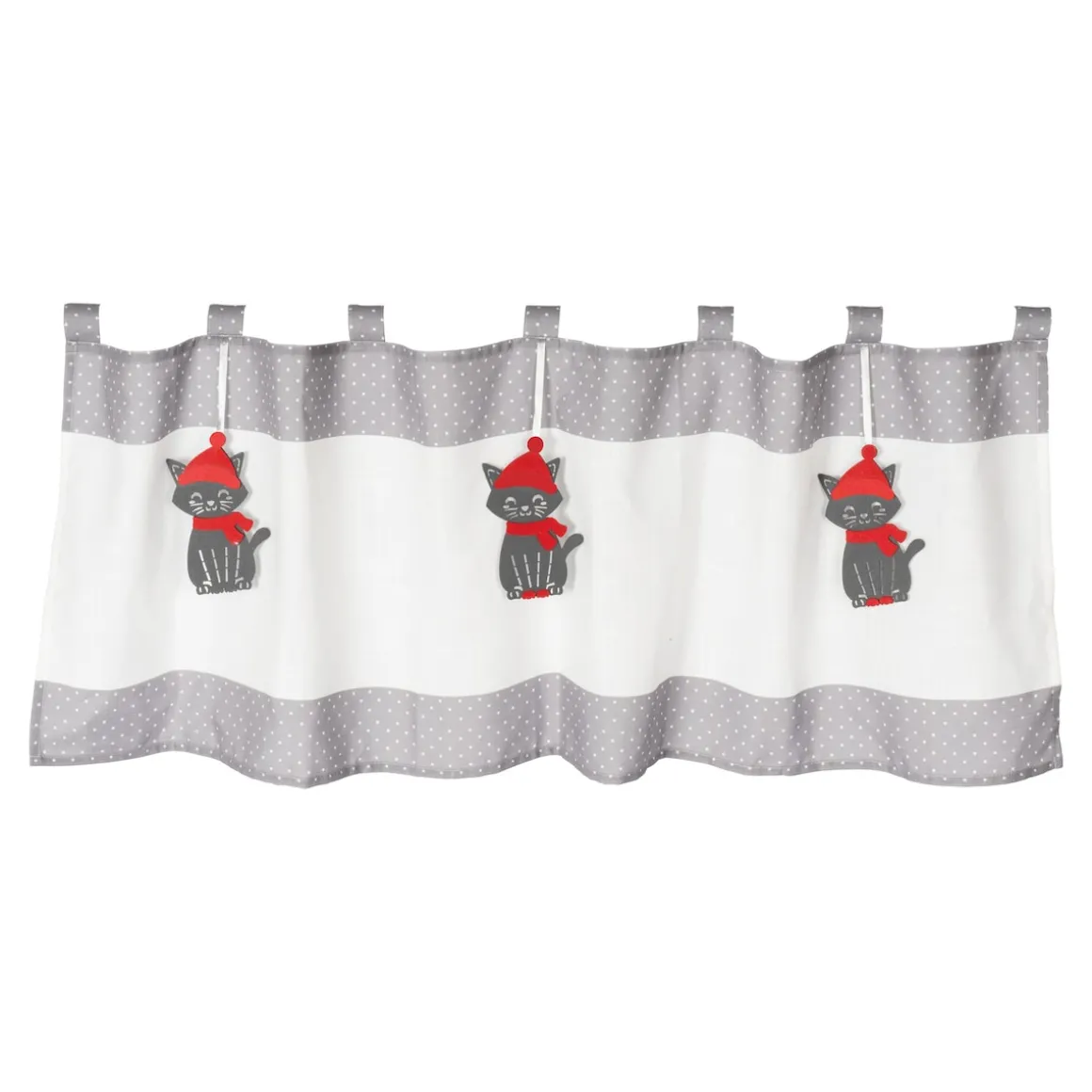 Jedes Kätzchen liebt seinen Fensterplatz! Hier sind es gleich mehrere, die Sie sich mit dieser Bistrogardine nach Hause holen können. Weihnachtsflair bringen die Samtpfoten direkt mit!