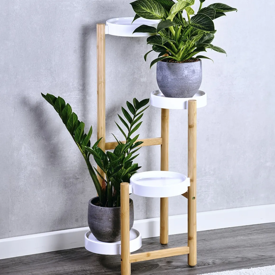 Mit diesem stilvollen Blumenständer setzen Sie Ihre Pflanzen und Deko-Elemente gekonnt in Szene. Drei Ablagen bieten ausreichend Platz, um kreative Arrangements zu gestalten. Dabei überzeugt das platzsparende Design durch seine Vielseitigkeit – ganz gleich, ob im Schlafzimmer, Wohnzimmer oder Wintergarten. Das moderne, harmonisch abgestimmte Erscheinungsbild wertet jeden Raum auf und bringt Natürlichkeit in Ihr Zuhause. Entscheiden Sie sich für eine stilvolle Lösung, die Form und Funktion perfekt vereint.