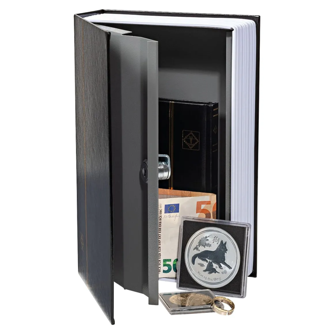 Für Diebe bleibt dieses Versteck ein Buch mit sieben Siegeln. Dank klassischer Buch-Optik fällt der Tresor kaum auf: ideal für Dokumente, Bargeld, Schmuck u. v. m. Schloss inkl. 2 Schlüsseln mit individueller Nummer für zusätzliche Sicherheit.