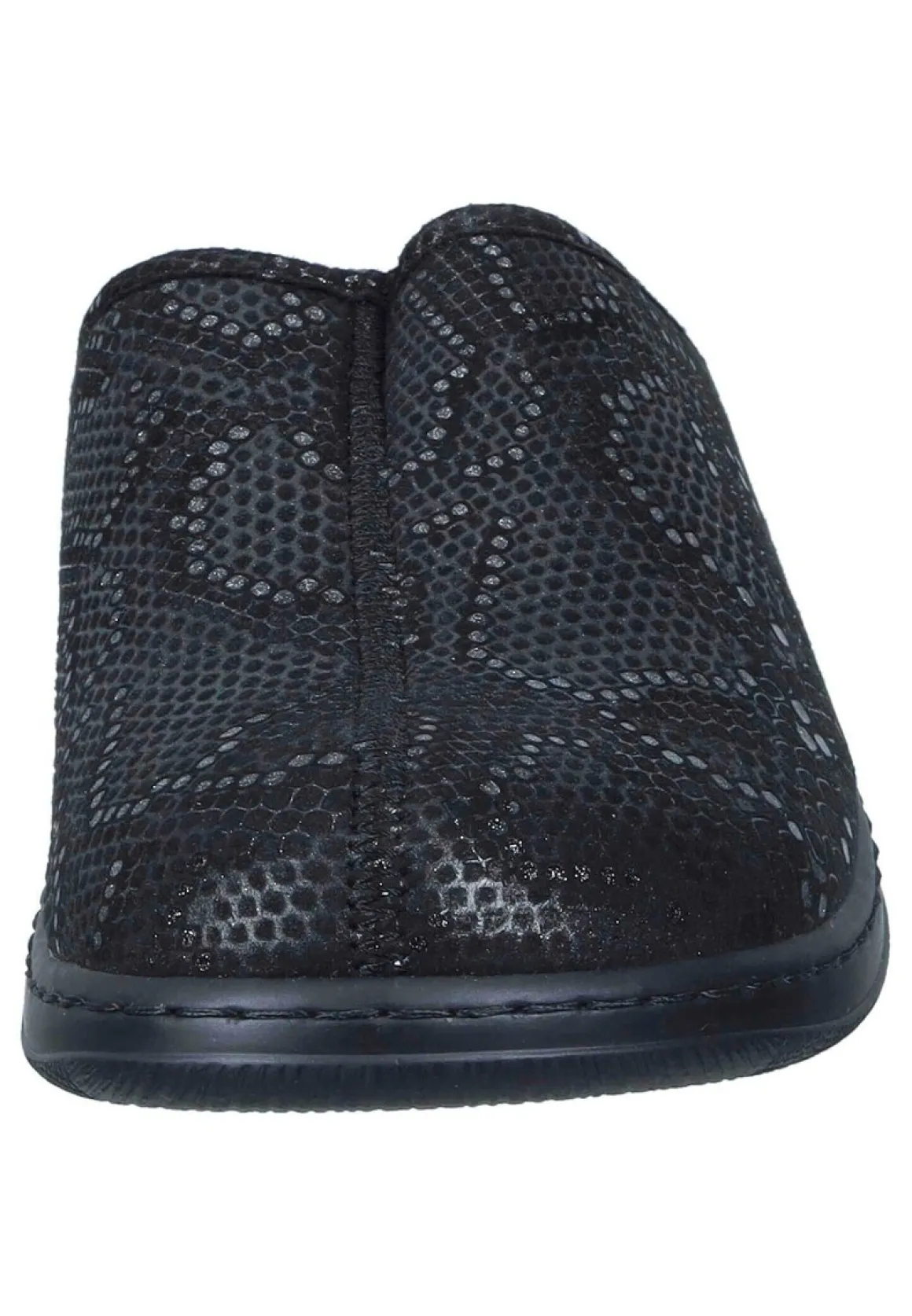Bei diesem Produkt handelt es sich um einen Schuh aus der Kategorie Klassische Pantoletten für Damen. Als Obermaterial wurde Textil verwendet und im inneren Bereich des Schuhs wurde Synthetik-Futter und herausnehmbare gepolsterte Lederdecksohle verarbeitet. Die Schuhweite dieses Artikels ist Weite K und somit für sehr kräftige Füße. Als Verschlussart wurde Schlupfschuh gewählt und die PU-Sohle rundet das Produkt ab. Der Artikel fällt normal aus, bitte die gewohnte Größe bestellen. – Schuhweite: Weite K –