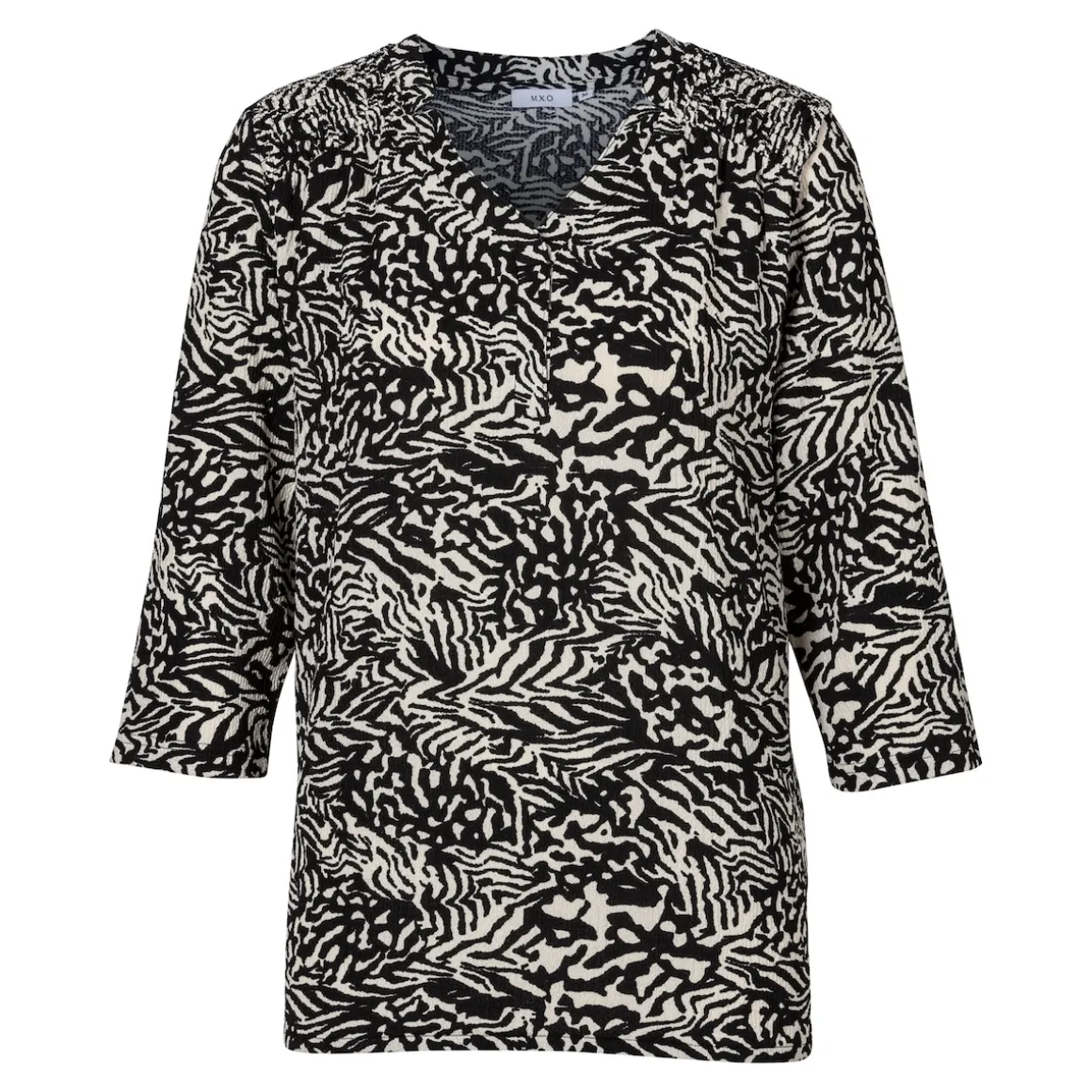 Das exotische Allover-Muster des Blusenshirts zieht garantiert alle Blicke auf sich. Das Crêpe-Material bleibt zudem auch im Koffer knitterfrei, was es ideal für den Urlaub macht!