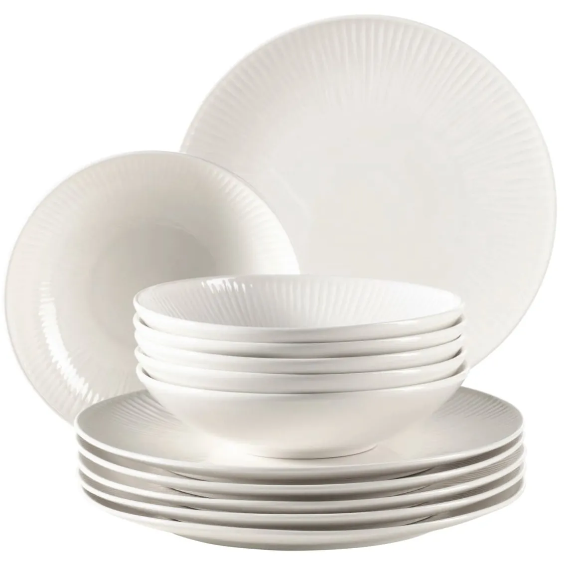 Die Tafelgeschirr Serie DALIA aus robustem Durable Porzellan in Gastronomiequalität bringt einen Hauch von Eleganz und Vintage-Look auf Ihren Esstisch – nicht nur zu besonderen Anlässen, sondern aufgrund ihrer Alltagstauglichkeit an jedem Tag. Die leicht unregelmäßige, filigrane Rippenstruktur wird Ihre Gäste verzaubern, ohne Ihren Speisen die Show zu stehlen. Kombinieren Sie dieses Tafelservice mit einem Frühstücksgeschirr-Set derselben Serie, um ein vollständiges Kombiservice für 6 Personen zu erhalten. Die in den Fotos angegebenen Füllmengen beziehen sich aus Gründen der Vergleichbarkeit auf eine Befüllung bis zum oberen Gefäßrand, bei den Abmessungen handelt es sich um Außenmaße.