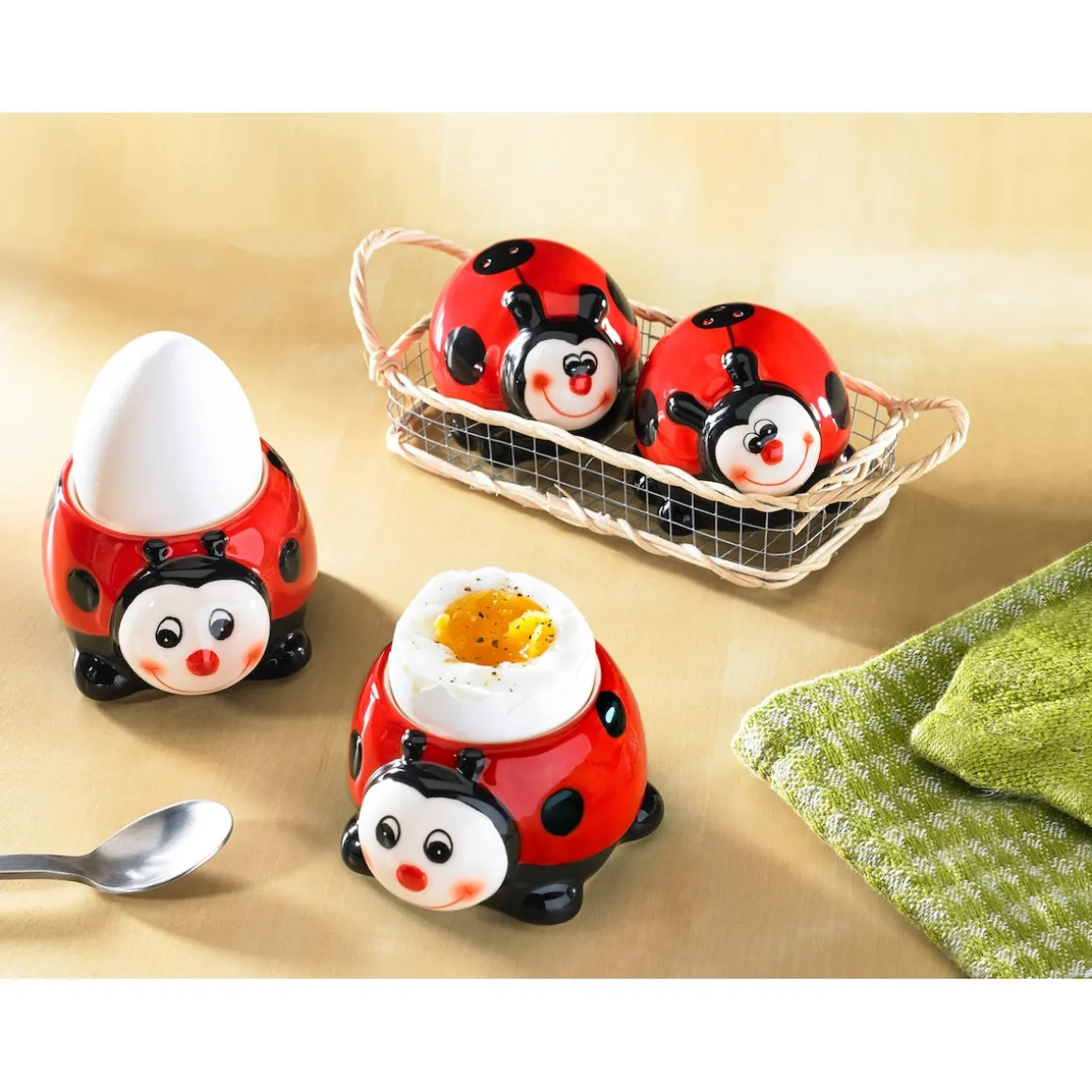 Fröhliche Stimmung am Frühstückstisch garantieren diese tollen Eierbecher im Kuh- oder Marienkäfer-Design.