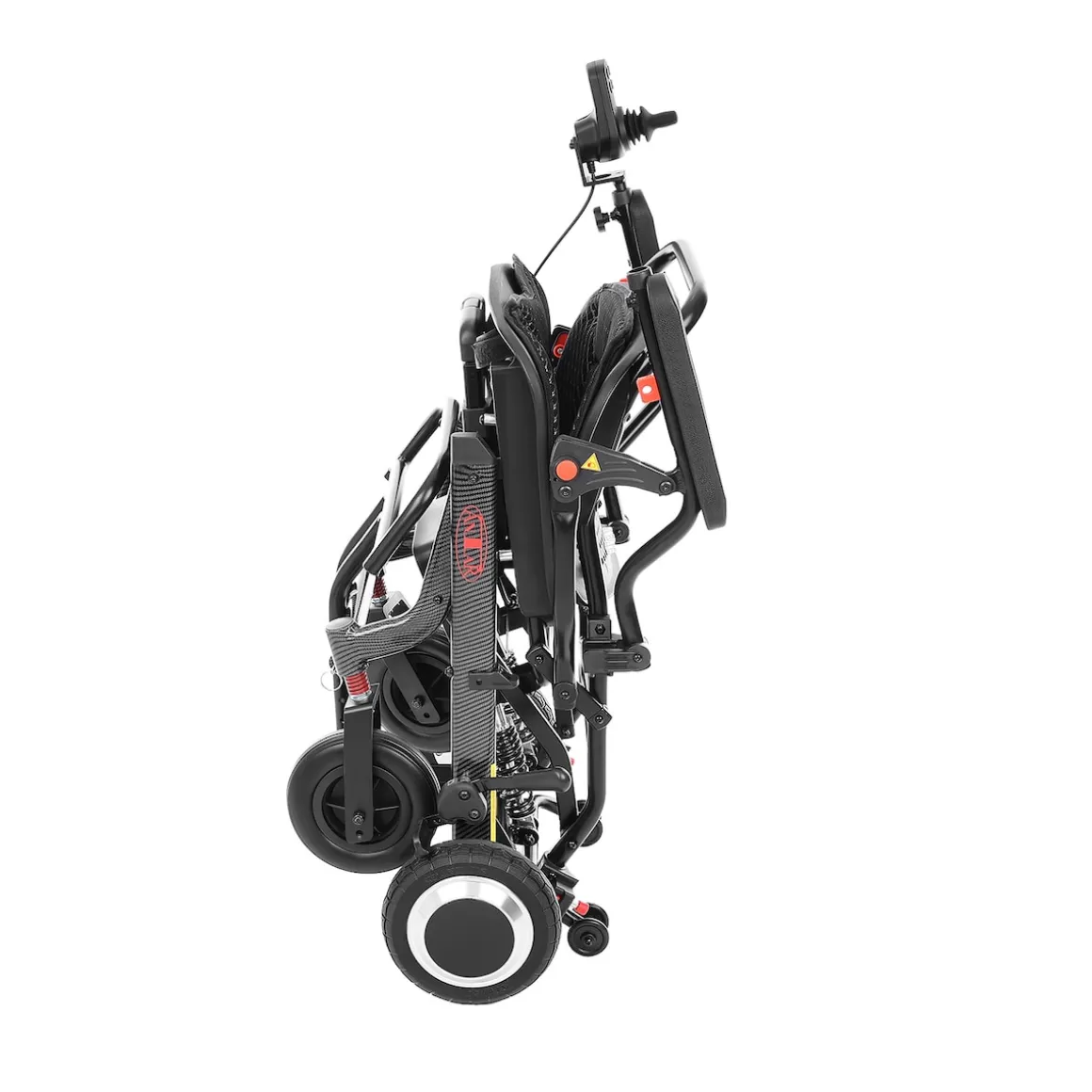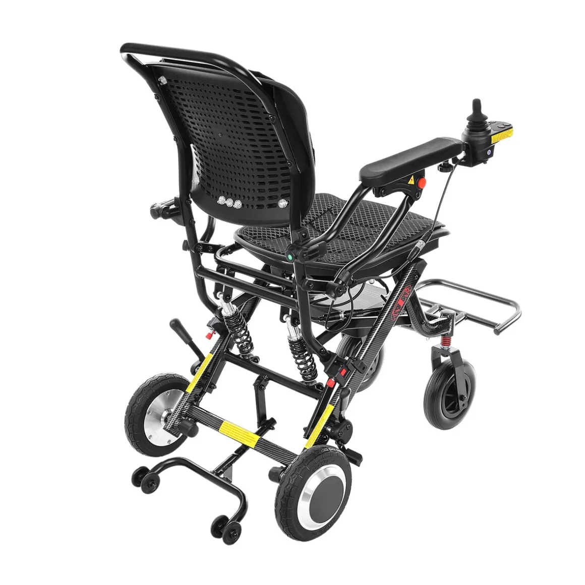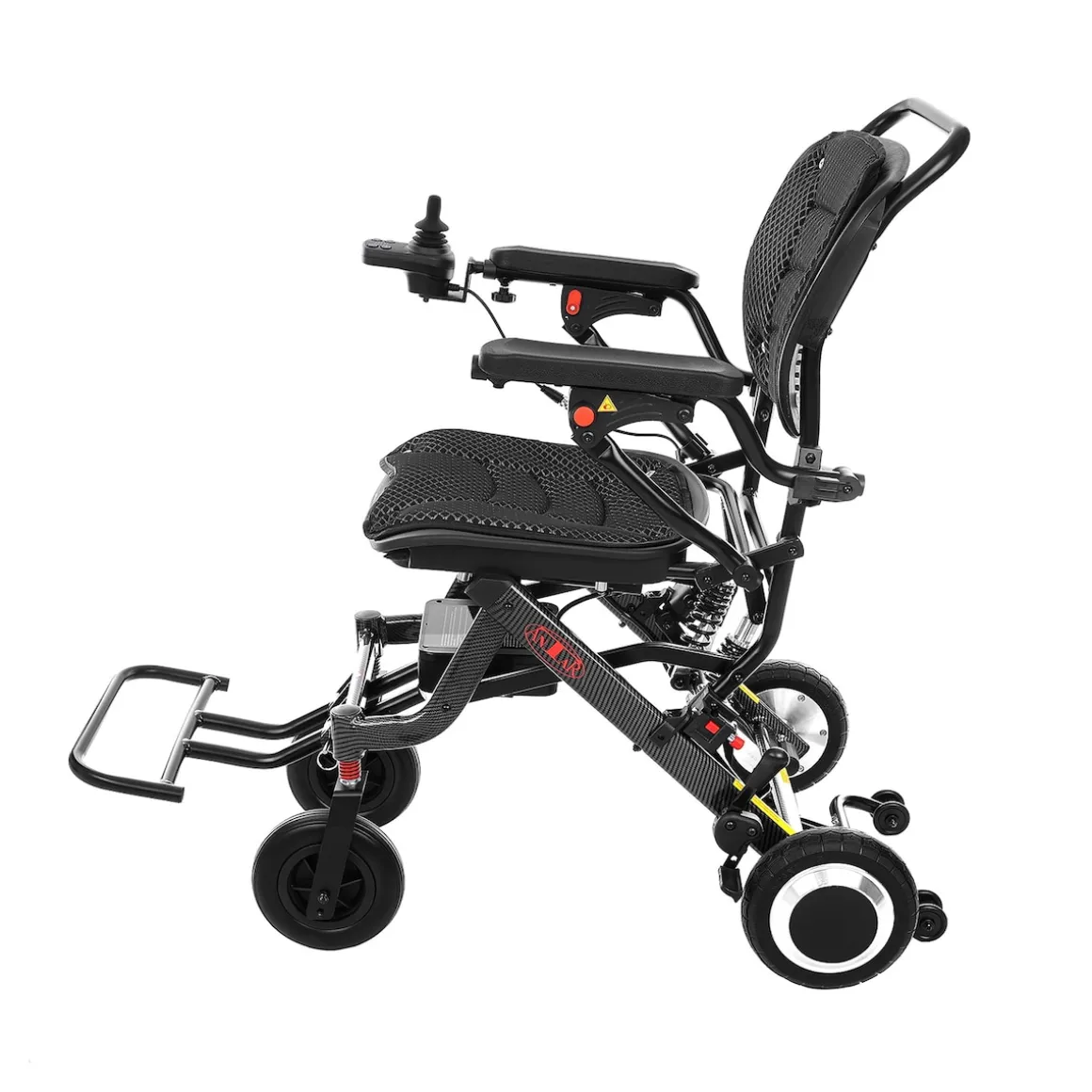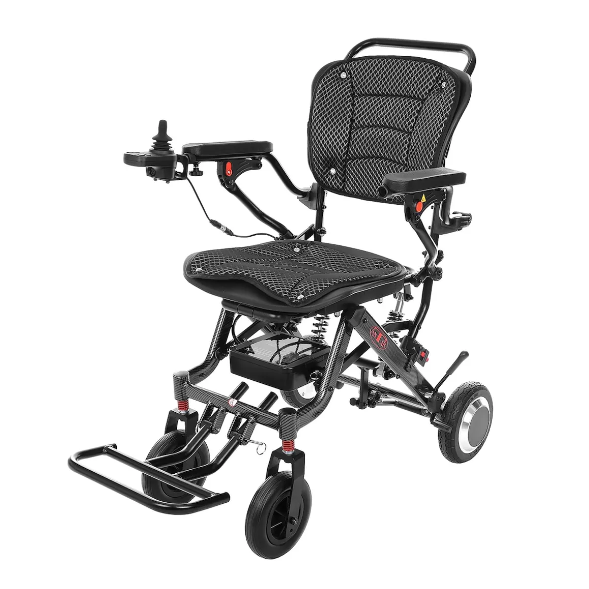 Der AT52326 Carbon-Elektrorollstuhl ist leicht, faltbar und ideal für den täglichen Gebrauch. Mit einem stabilen Aluminiumrahmen und Carbonbeschichtung ist er robust und dennoch einfach zu transportieren. Die Abmessungen von 106 x 55 x 92 cm sorgen für ausreichend Platz und Komfort.