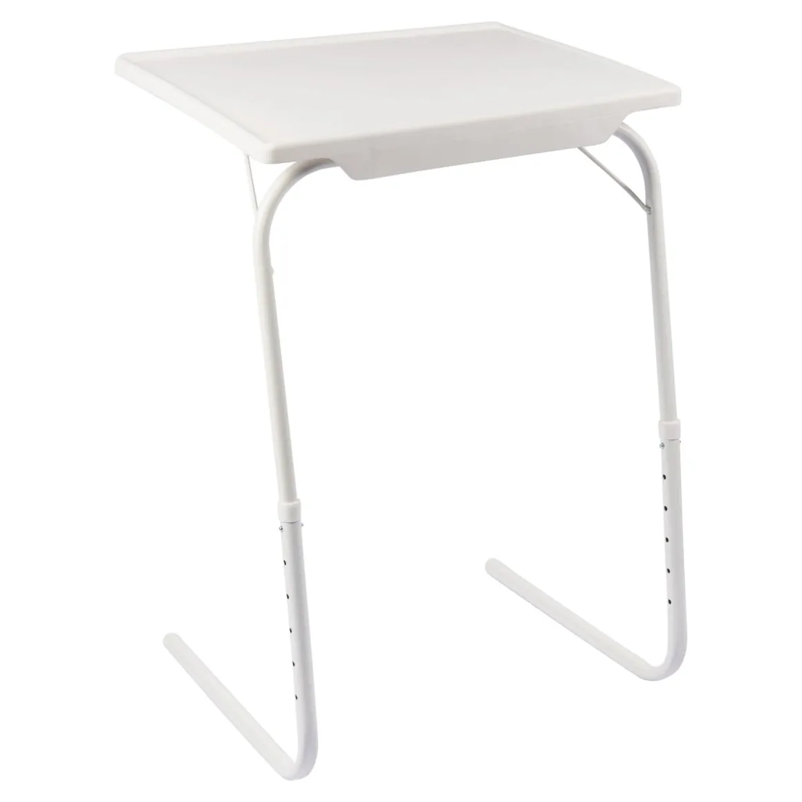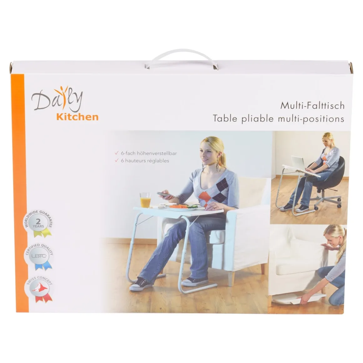 In 3 verschiedenen Winkeln und in der Höhe von 55 – 71 cm einstellbar. Tischplatte abnehmbar.