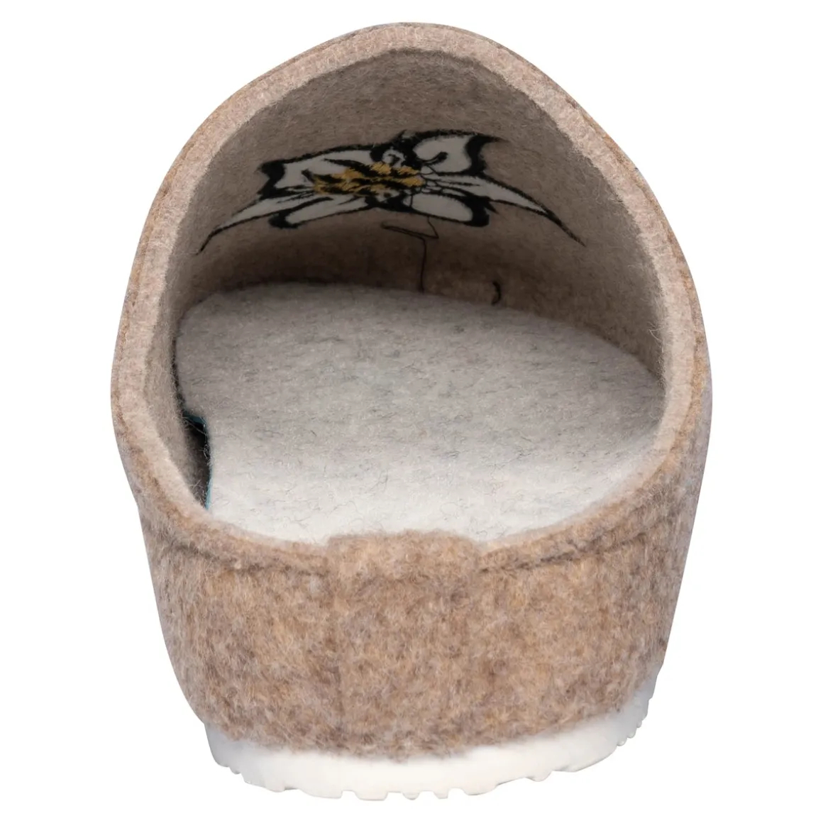 In dieser bequemen und leichten Filz-Pantolette mit auffälliger Edelweiß-Stickerei werden sich Ihre Füße rundum wohlfühlen. Dank der rutschhemmenden Gummi-Laufsohle ist auch ein Gang nach draußen problemlos möglich. Mit herausnehmbarer Einlegesohle.