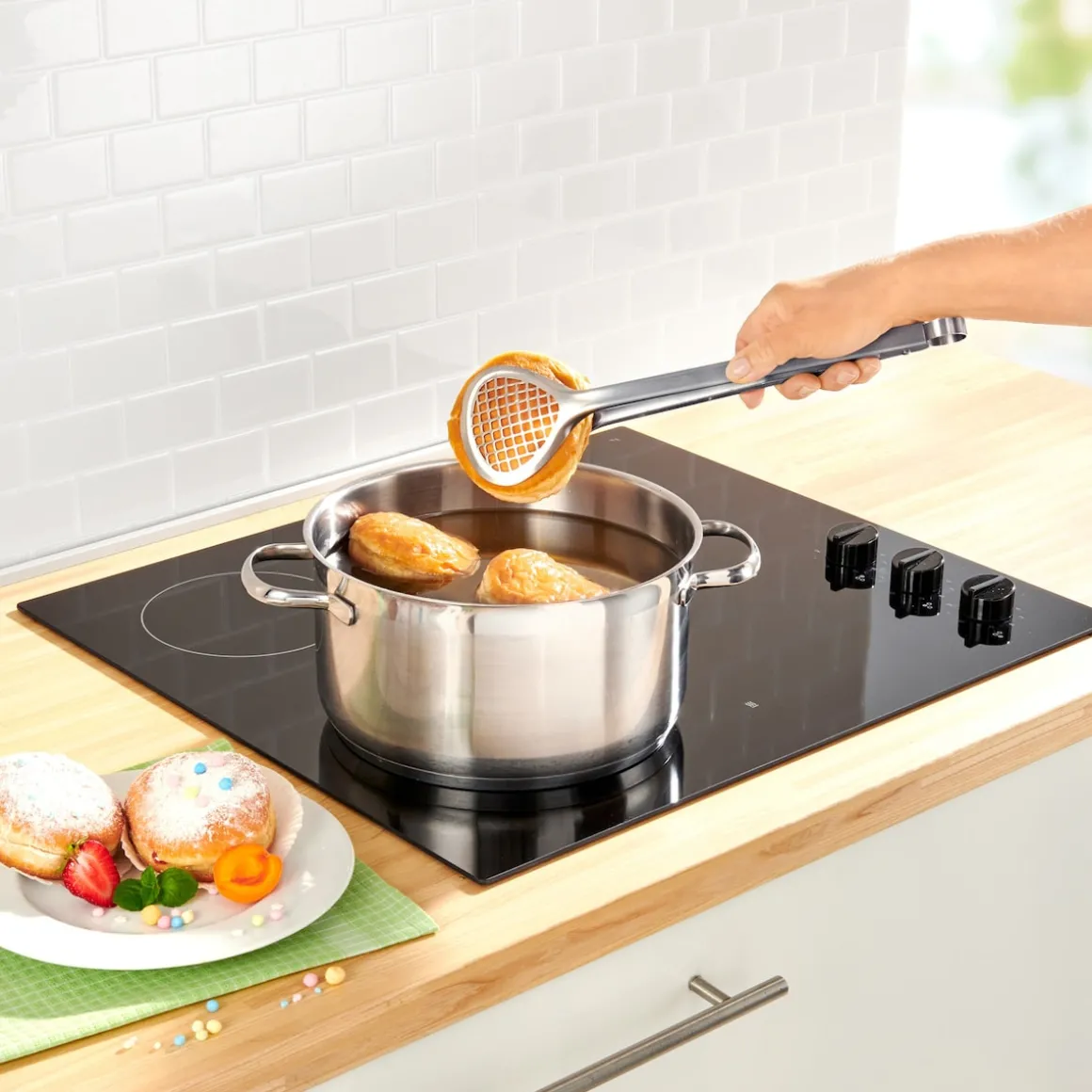 Diese Frittier-Zange punktet mit ihrem genialen Gitterdesign und holt Lebensmittel schnell und sicher aus heißem Öl oder Wasser. Mehr noch: Ohne Umwege und Kleckerei können Sie Ihre abgetropften Köstlichkeiten sofort servieren.