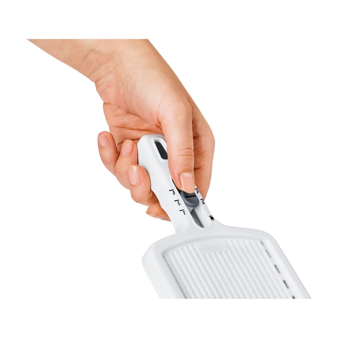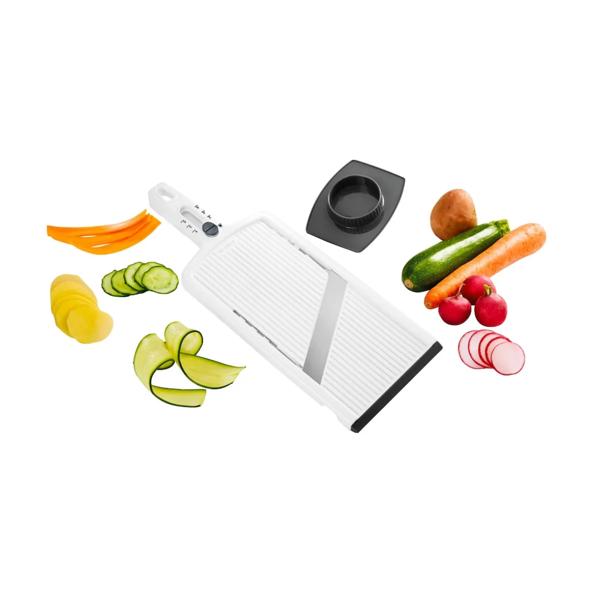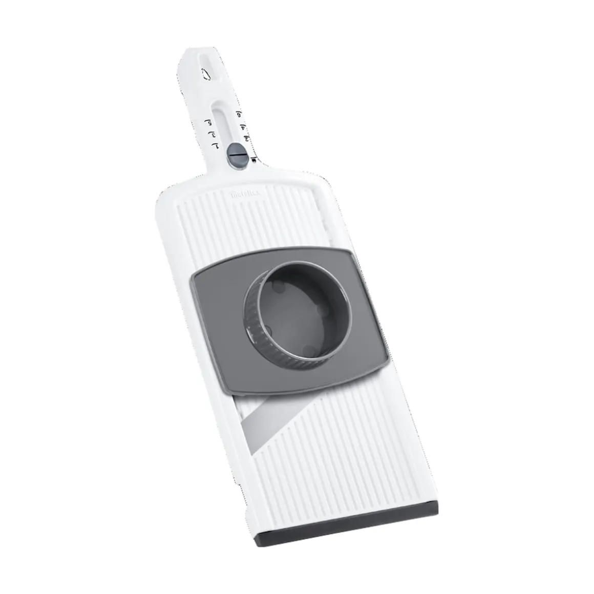 6-stufig verstellbarer Universalhobel von METALTEX mit Sicherheitsschieber, Anti-Rutsch-Stopper und ergonomischem Griff. Ideal für Obst und Gemüse!