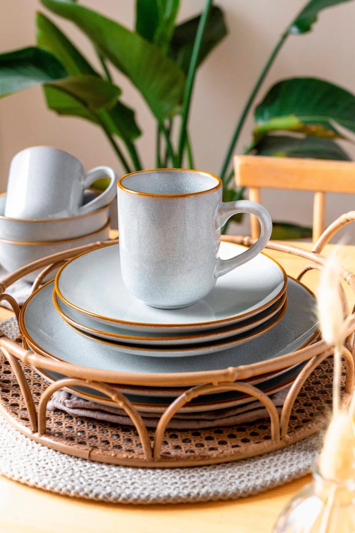Die Keramikgeschirr Serie „Mabella“ der österreichischen Traditionsmarke Mäser vereint harmonisch ruhige Natur-Farbtöne mit hochwertigem Glanz. Die Kombination der grau-beigen Glasur, die mit weißen Sprenkeln durchzogen ist und dem feinen braunen Rand ergibt ein ausgewogenes Farbspiel im Boho-Style.