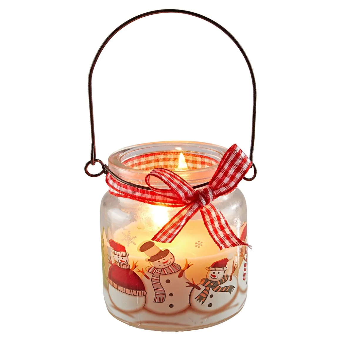 Dieses handbemalte Glas sorgt mit dem fröhlichen Schneemänner-Motiv nicht nur für Winterstimmung, sondern spendet auch romantisches Kerzenlicht an frostigen Wintertagen. Mit Karoschleife.