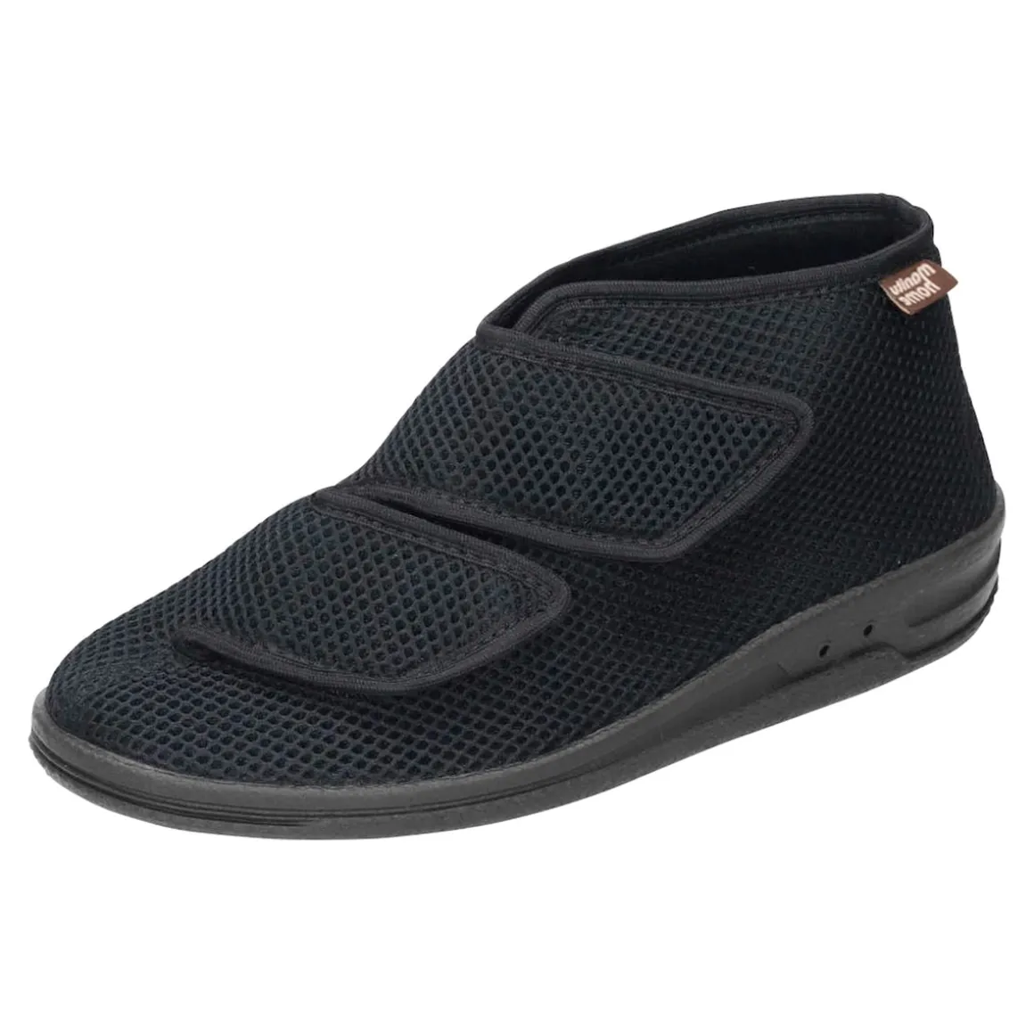 Durch den doppelten Klettverschluss lassen sich die Hausschuhe besonders weit öffnen. So können Sie mit Ihren Füßen problemlos und ganz ohne Anstrengung hineinschlüpfen und sofort das wohlige Tragegefühl der Manitu-Schuhe genießen. Wie eng der Hausschuh ist, lässt sich über die Klettverschlüsse flexibel einstellen – ideal, wenn Ihre Füße durch eine Venenschwäche oder Wassereinlagerungen im Tagesverlauf ihre Größe stark verändern.