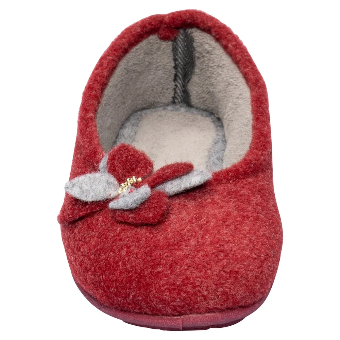Kalte Füße waren gestern: Mit diesem überaus komfortablen Hausschuh-Ballerina halten Sie Ihre Füße mollig warm. Das kuschelige Material und die weiche Decksohle sorgen für eine extra Portion Gemütlichkeit. Hübsches Detail: Die zweifarbige Blütenapplikation macht den Hausschuh optisch zu einem attraktiven Blickfang. Dank der rutschhemmenden, flexiblen Gummi-Laufsohle ist auch ein kurzer Gang nach draußen kein Problem.