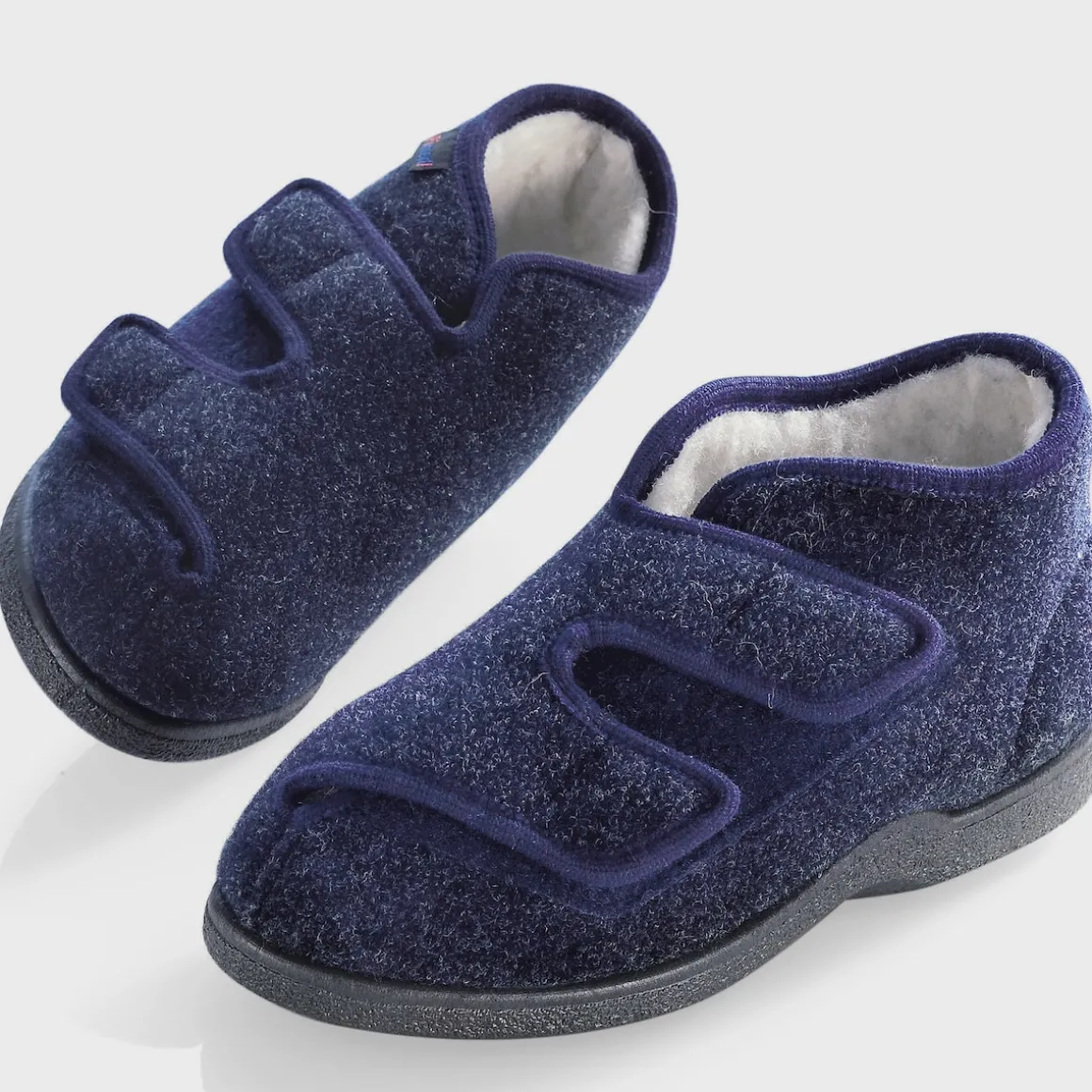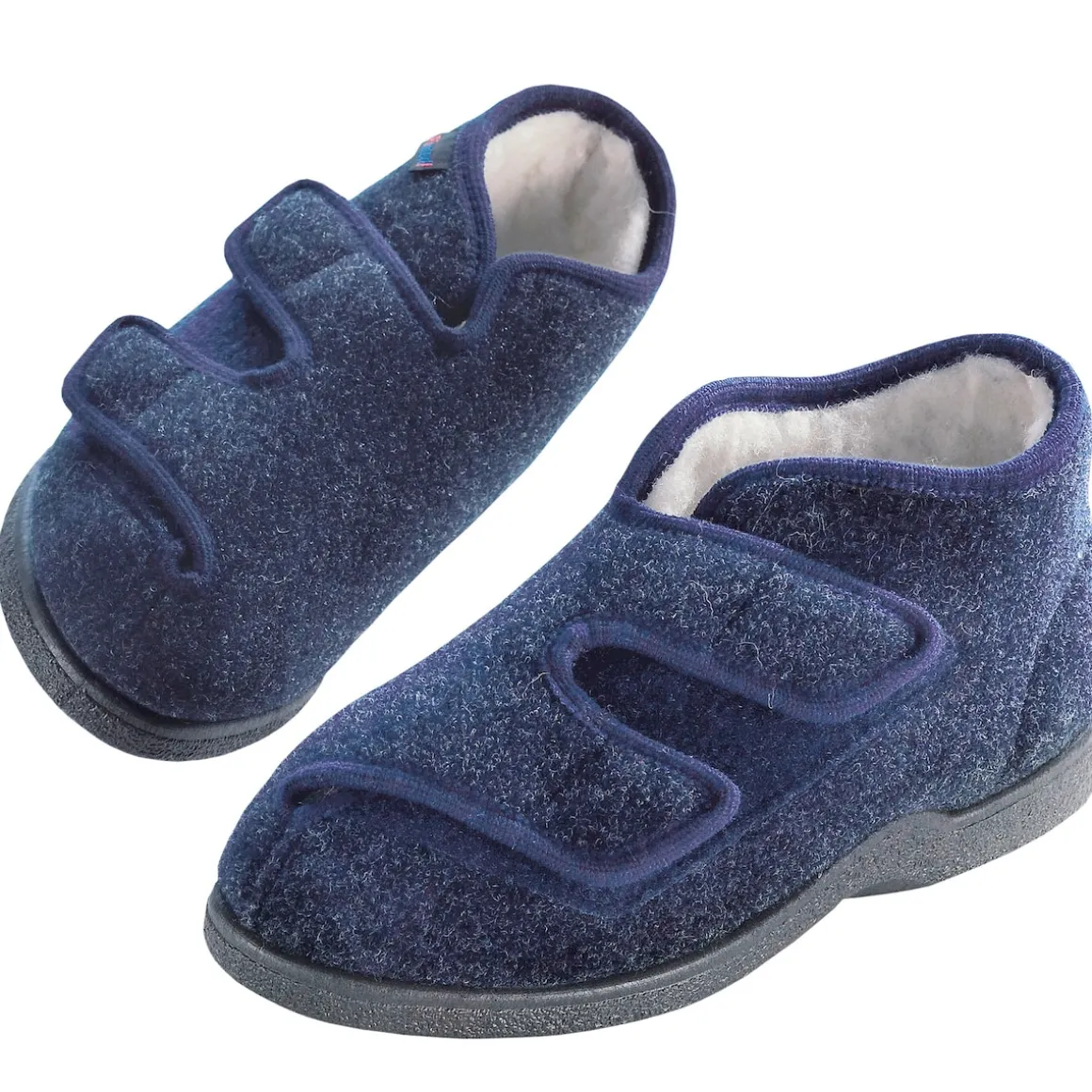 Erleben Sie pure Gemütlichkeit mit unserem Hausschuh mit Schurwolle. Das natürliche Futter aus 100% Schurwolle hält Ihre Füße herrlich warm und weich. Die starken Klettverschlüsse ermöglichen ein besonders weites Öffnen des Schuhs, wodurch er leicht anzuziehen ist und gleichzeitig sicheren Halt bei individueller Weite bietet. Genießen Sie den Komfort und die Wärme, die dieser Hausschuh Ihnen in der kalten Jahreszeit bietet.
