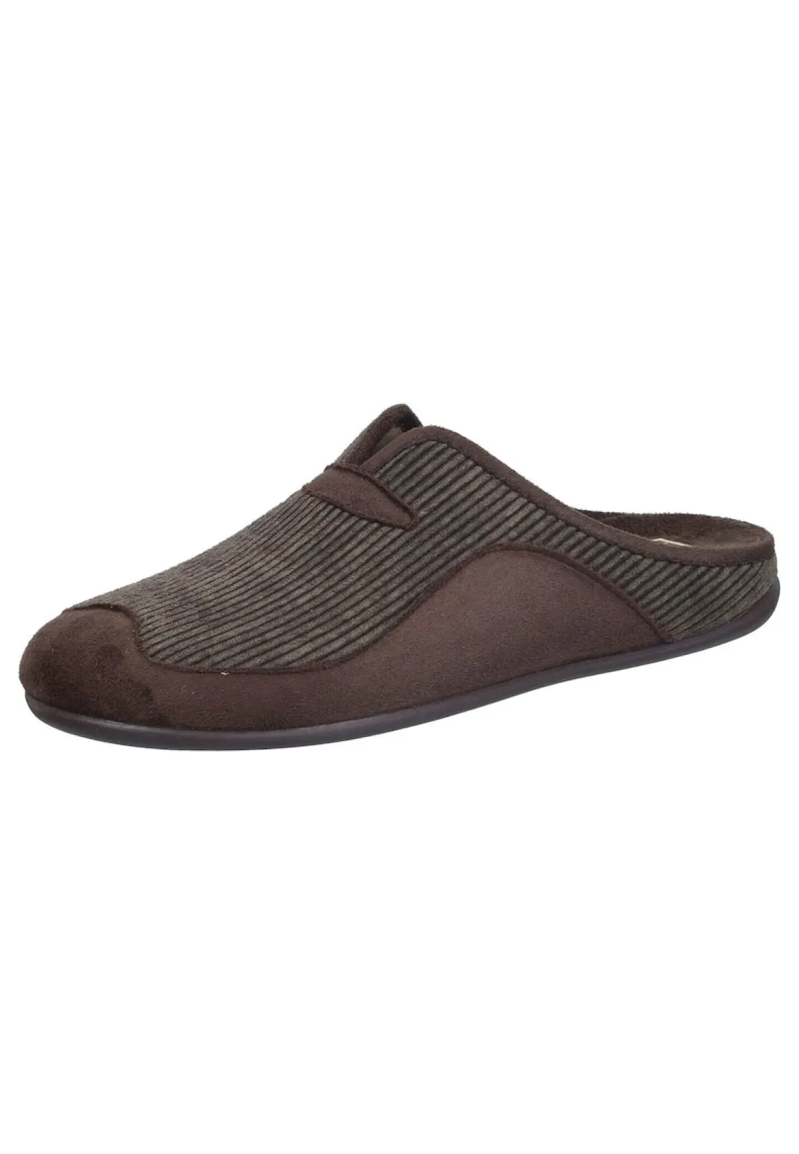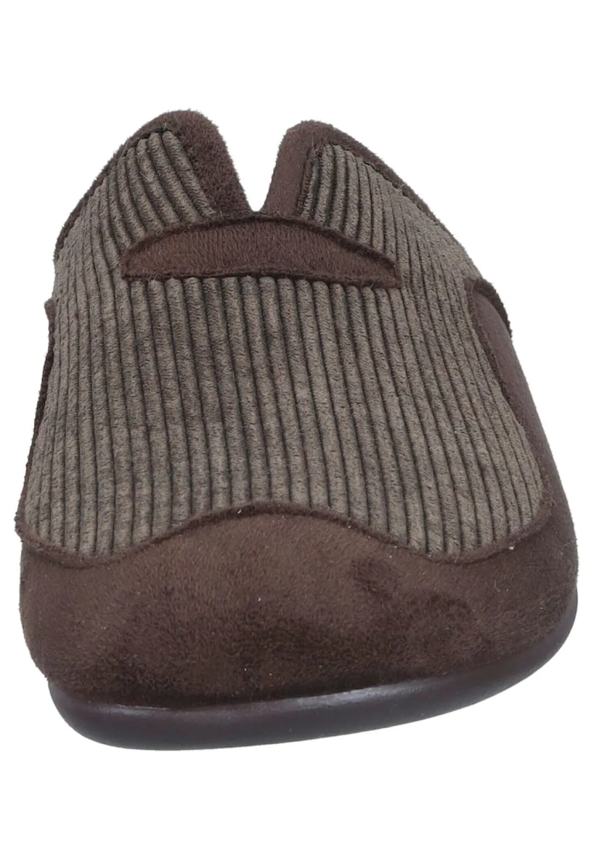 Bei diesem Produkt handelt es sich um einen Schuh aus der Kategorie Klassische Hausschuhe für Herren. Als Obermaterial wurde Cord verwendet und im inneren Bereich des Schuhs wurde Synthetik-Futter und herausnehmbare gefütterte Decksohle verarbeitet. Die Schuhweite dieses Artikels ist normal und somit standard. Als Verschlussart wurde Schlupfschuh gewählt und die Gummisohle rundet das Produkt ab. Der Artikel fällt normal aus, bitte die gewohnte Größe bestellen. – Schuhweite: normal –