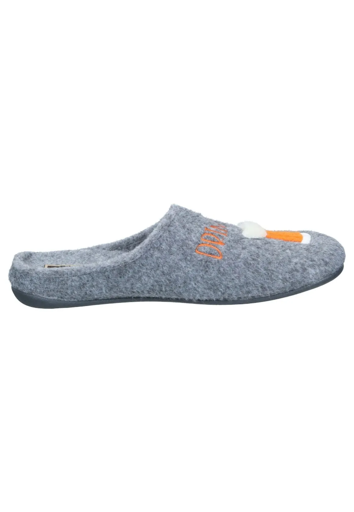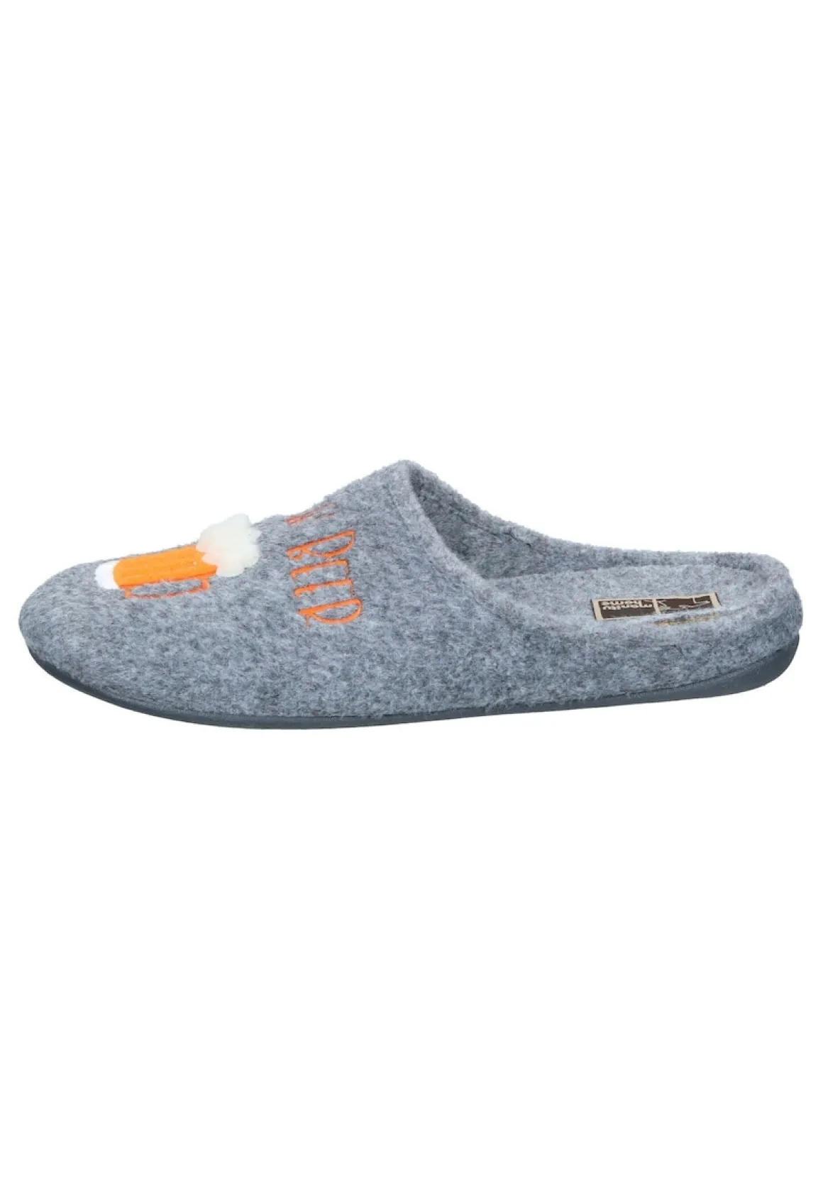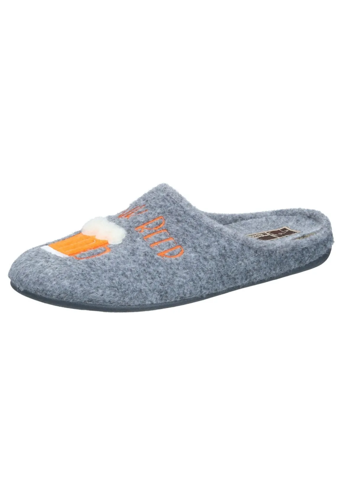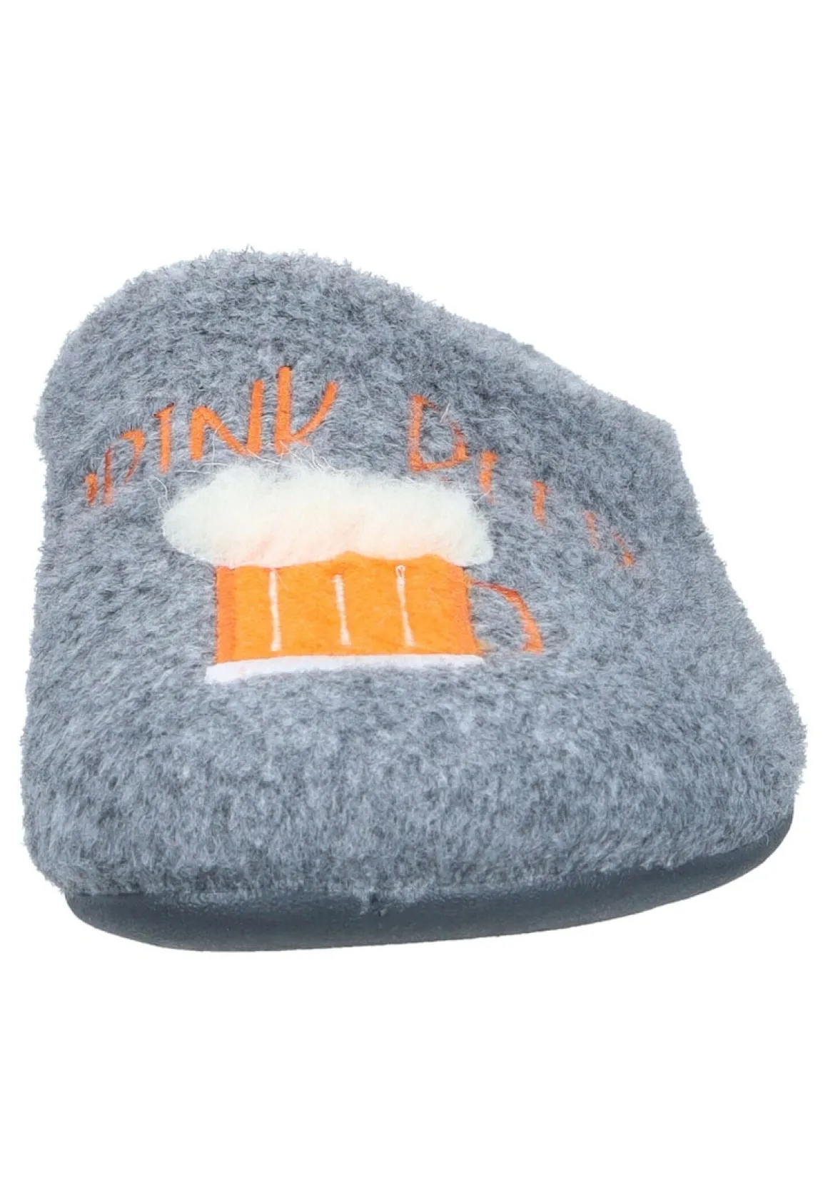 Bei diesem Produkt handelt es sich um einen Schuh aus der Kategorie Klassische Hausschuhe für Herren. Als Obermaterial wurde Filz verwendet und im inneren Bereich des Schuhs wurde ungefüttert und herausnehmbare Filzdecksohle verarbeitet. Die Schuhweite dieses Artikels ist normal und somit standard. Als Verschlussart wurde Schlupfschuh gewählt und die Gummisohle rundet das Produkt ab. Der Artikel fällt normal aus, bitte die gewohnte Größe bestellen. – Schuhweite: normal –