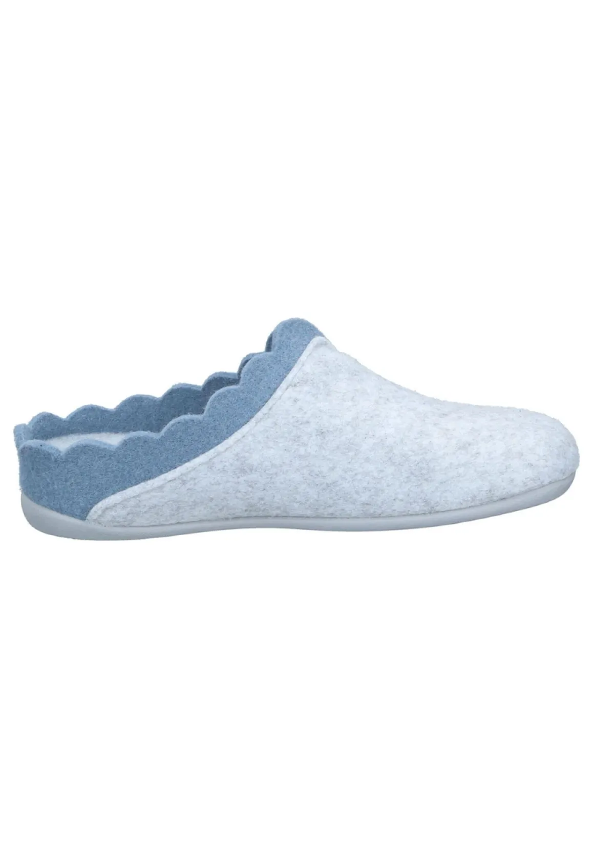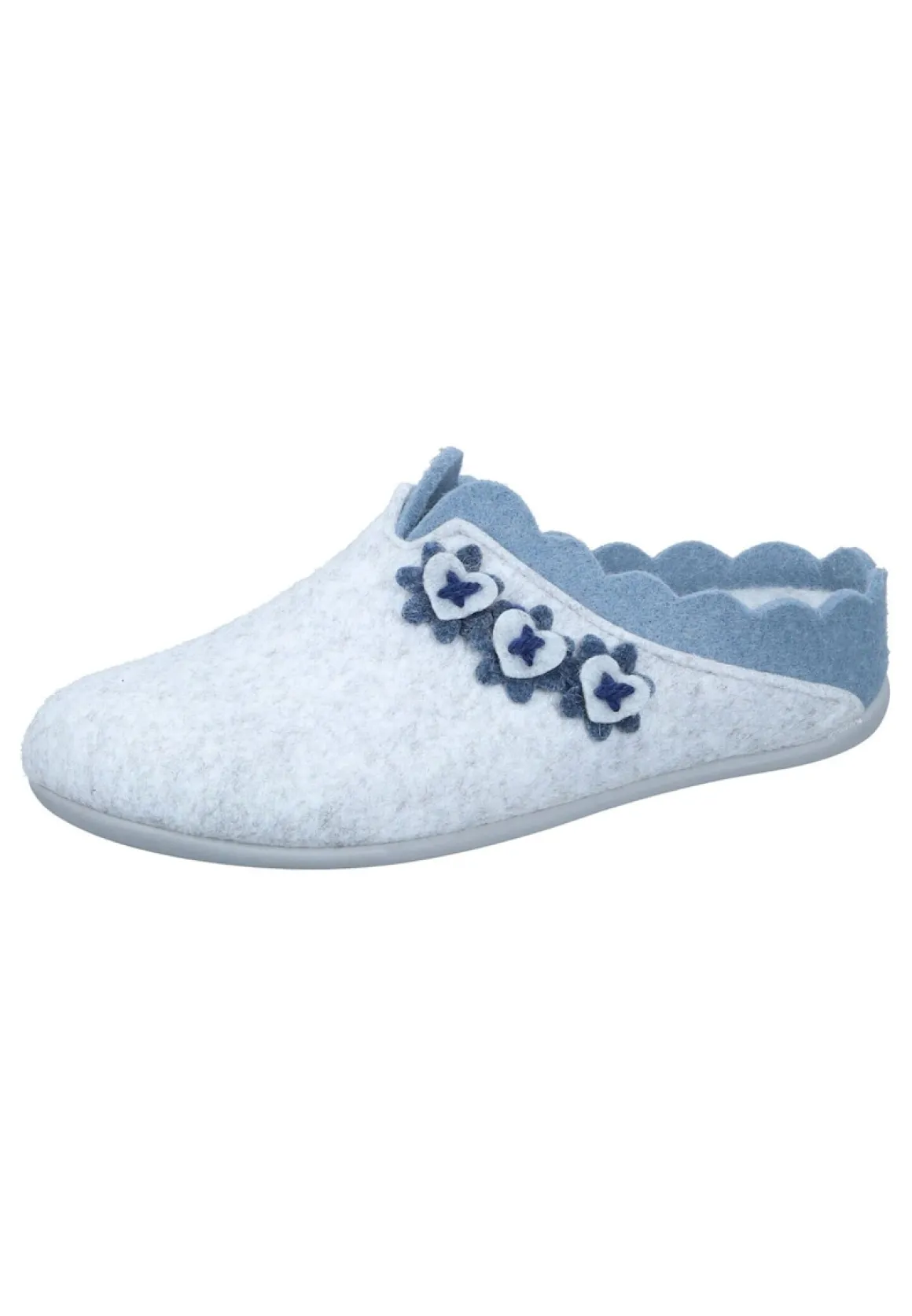 Bei diesem Produkt handelt es sich um einen Schuh aus der Kategorie Klassische Hausschuhe für Damen. Als Obermaterial wurde Filz verwendet und im inneren Bereich des Schuhs wurde ungefüttert und herausnehmbare Filzdecksohle verarbeitet. Die Schuhweite dieses Artikels ist normal und somit standard. Als Verschlussart wurde Schlupfschuh gewählt und die Gummisohle rundet das Produkt ab. Der Artikel fällt normal aus, bitte die gewohnte Größe bestellen. – Schuhweite: normal –