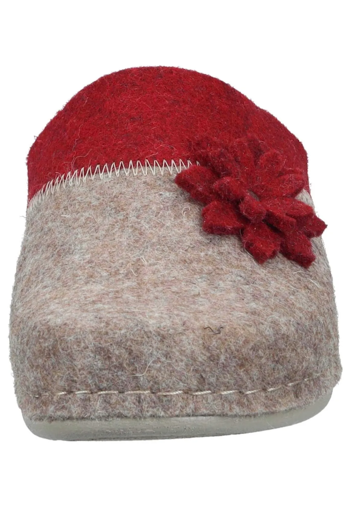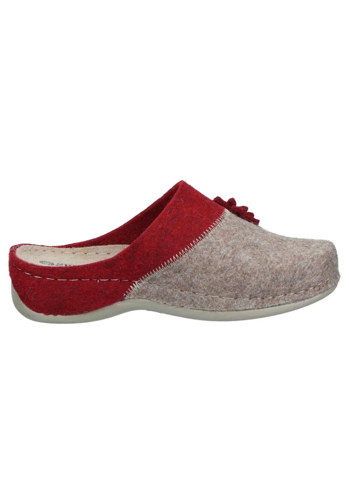 Bei diesem Produkt handelt es sich um einen Schuh aus der Kategorie Klassische Hausschuhe für Damen. Als Obermaterial wurde Wollfilz verwendet und im inneren Bereich des Schuhs wurde ungefüttert und Lederdecksohle verarbeitet. Die Schuhweite dieses Artikels ist Weite G und somit normal. Als Verschlussart wurde Schlupfschuh gewählt und die PU-Sohle rundet das Produkt ab. Der Artikel fällt normal aus, bitte die gewohnte Größe bestellen. – Schuhweite: Weite G –