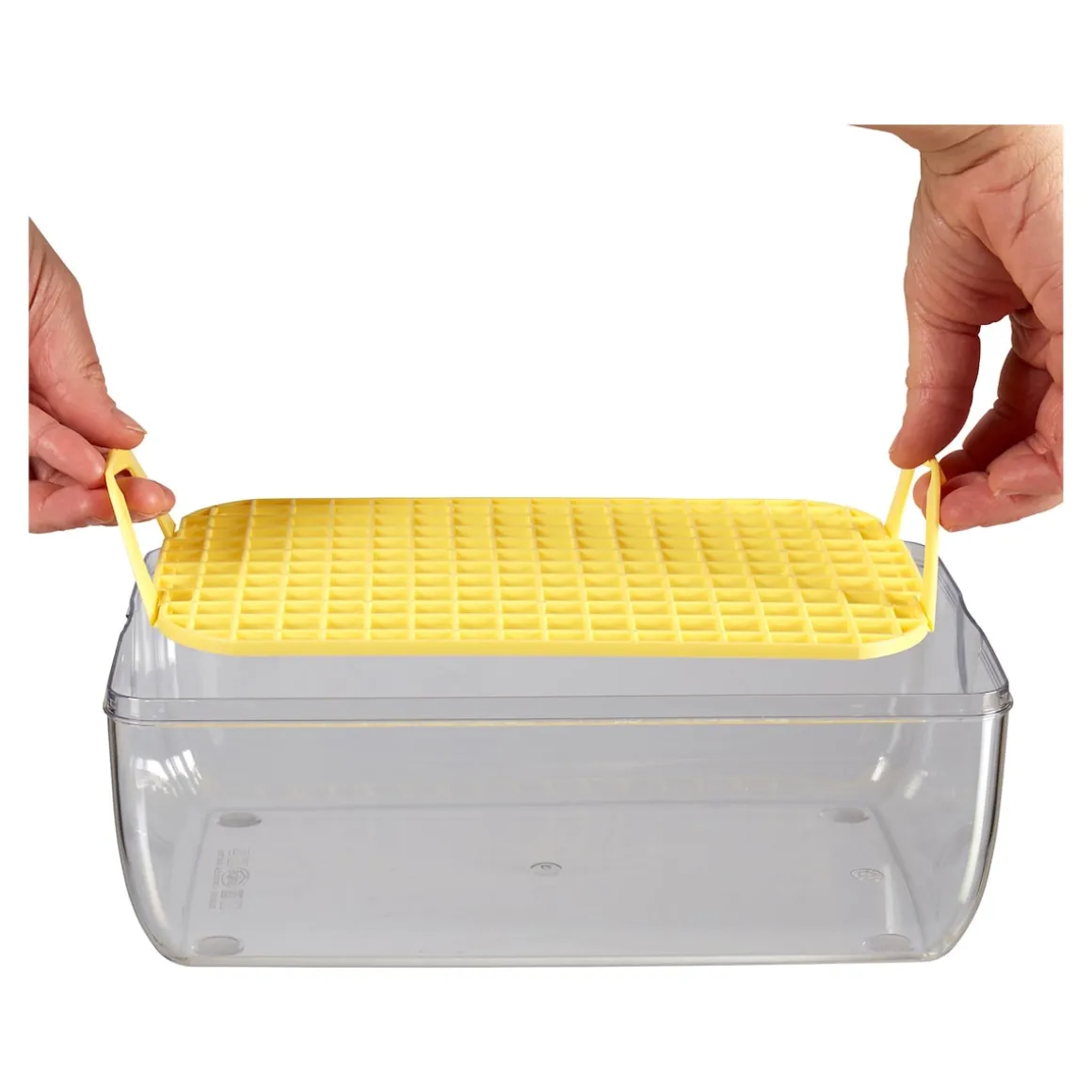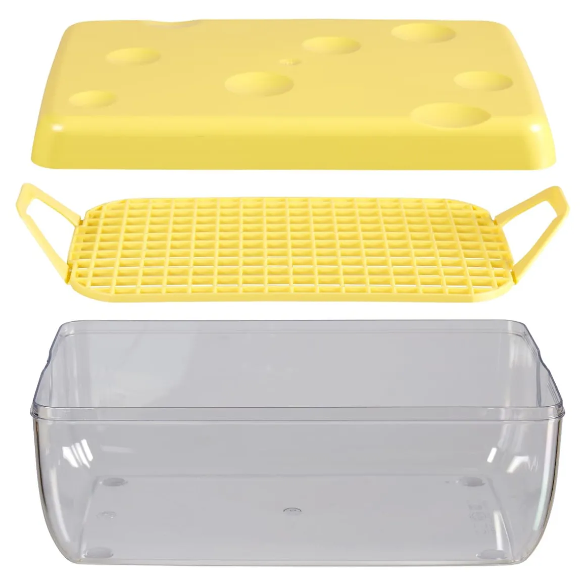 Unsere Käse-Frischhaltedose wird Ihr neuer Käse-Liebling sein! Der herausnehmbare Gitterboden hält den Käse schmackhaft und frisch, während der „Käsedeckel“ luftdicht und sicher verschließt. Perfekt für Kühlschrank und unterwegs – nie mehr ausgetrockneter Käse. Und das Beste: Die Dose ist spülmaschinengeeignet, was die Reinigung zum Kinderspiel macht. Wählen Sie die moderne Alternative zur Käseglocke und bewahren Sie Ihren Käse in bester Qualität auf. Genießen Sie frischen Käse, wann immer Sie möchten, mit unserer Käse-Frischhaltedose!