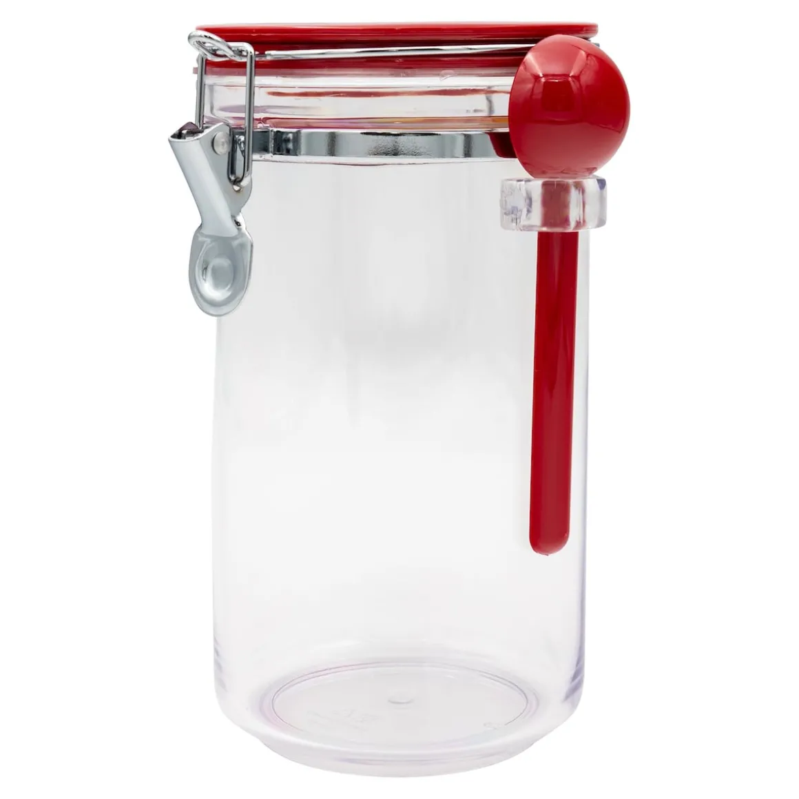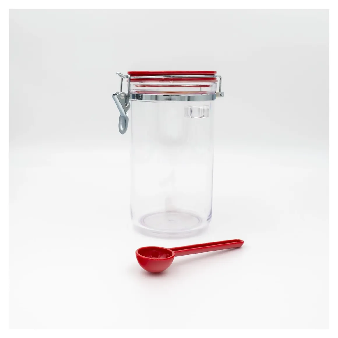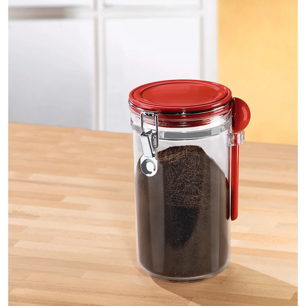 Die transparente Dose mit rotem Deckel lässt Sie immer im klaren über ihren Inhalt. Die über den Schnappverschluss fest andrückbare Silikondichtung sorgt dafür, dass das kostbare Aroma Ihres Kaffees oder Tees nicht entweichen kann. Durch eine direkt an der Dose angebrachte Haltevorrichtung haben Sie den integrierten Löffel immer griffbereit.