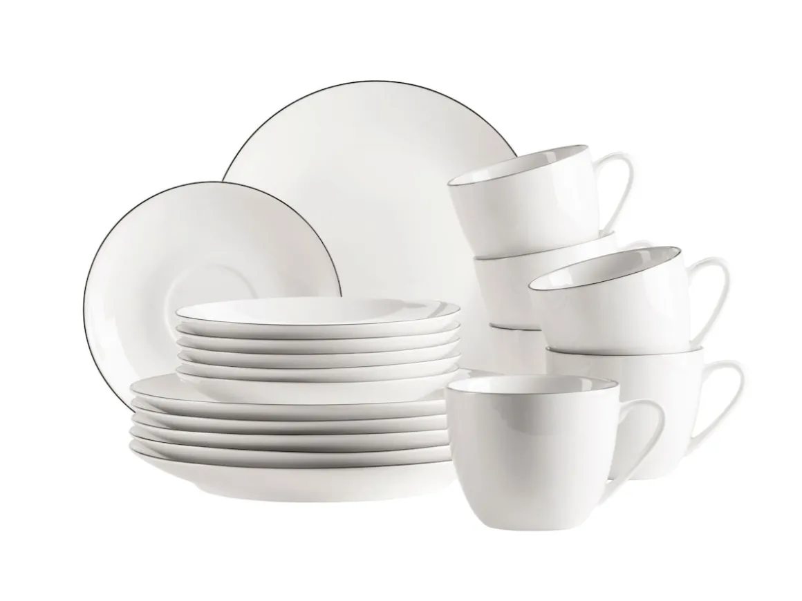 Klassisches Porzellan Geschirrservice mit modernem Touch: die Serie Felise, der Marke MÄSER, überzeugt durch seinen zeitlosen, filigranen Look. Das leichte, elegante Porzellan harmoniert perfekt mit dem puristischen Design und dem dezenten Rand. Alltagstauglich, mikrowellengeeignet und spülmaschinengeeignet.