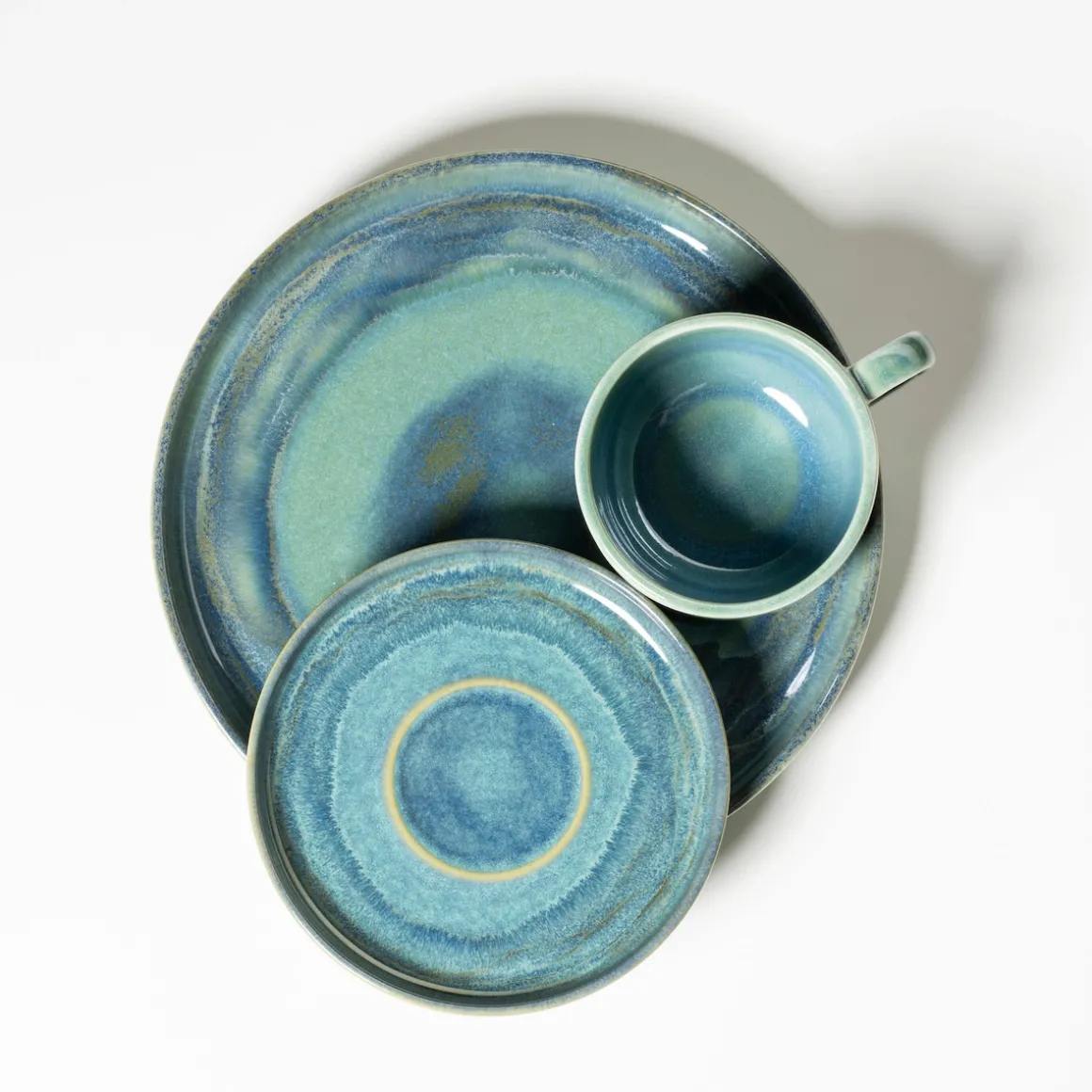 Wohl in jeder Alpenregion gibt es ihn: Den tiefen See, um den sich Legenden ranken. Der zum Baden meist zu kalt ist. Der Ruhe ausstrahlt und zum Verweilen einlädt. Die facettenreiche Kollektion Tiefer See mit ihren ineinanderfließenden Farbnuancen ist eine Hommage an diesen ganz besonderen Ort. An ihren Rändern spiegeln sich die umgebenden Berge auf einer sich kräuselnden Wasseroberfläche. Ihre beinahe dreidimensional erscheinende Mitte bringt die Kraft der Tiefe und Stille auf den Esstisch.