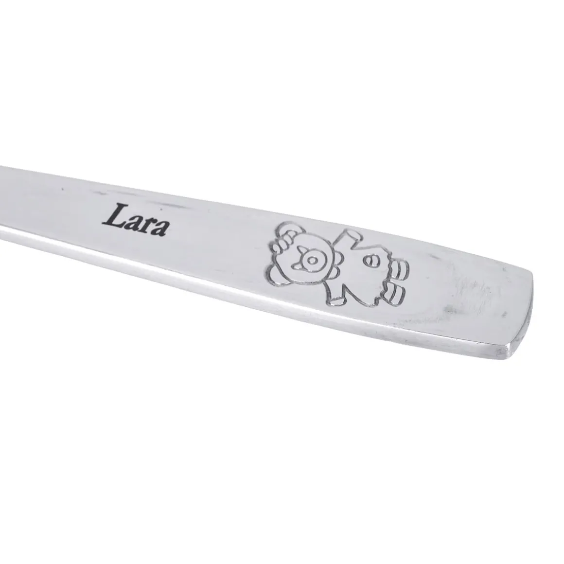 Die niedlichen Tiermotive sorgen gleich für gute Laune beim Ansehen und Benutzen des Bestecks. Über den Tiermotiven lässt sich der Name des Kindes individuell eingravieren.