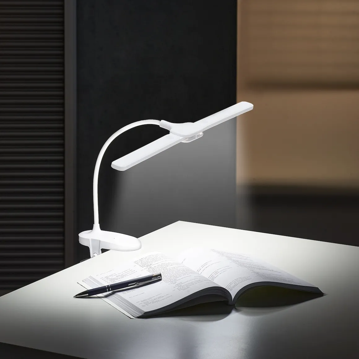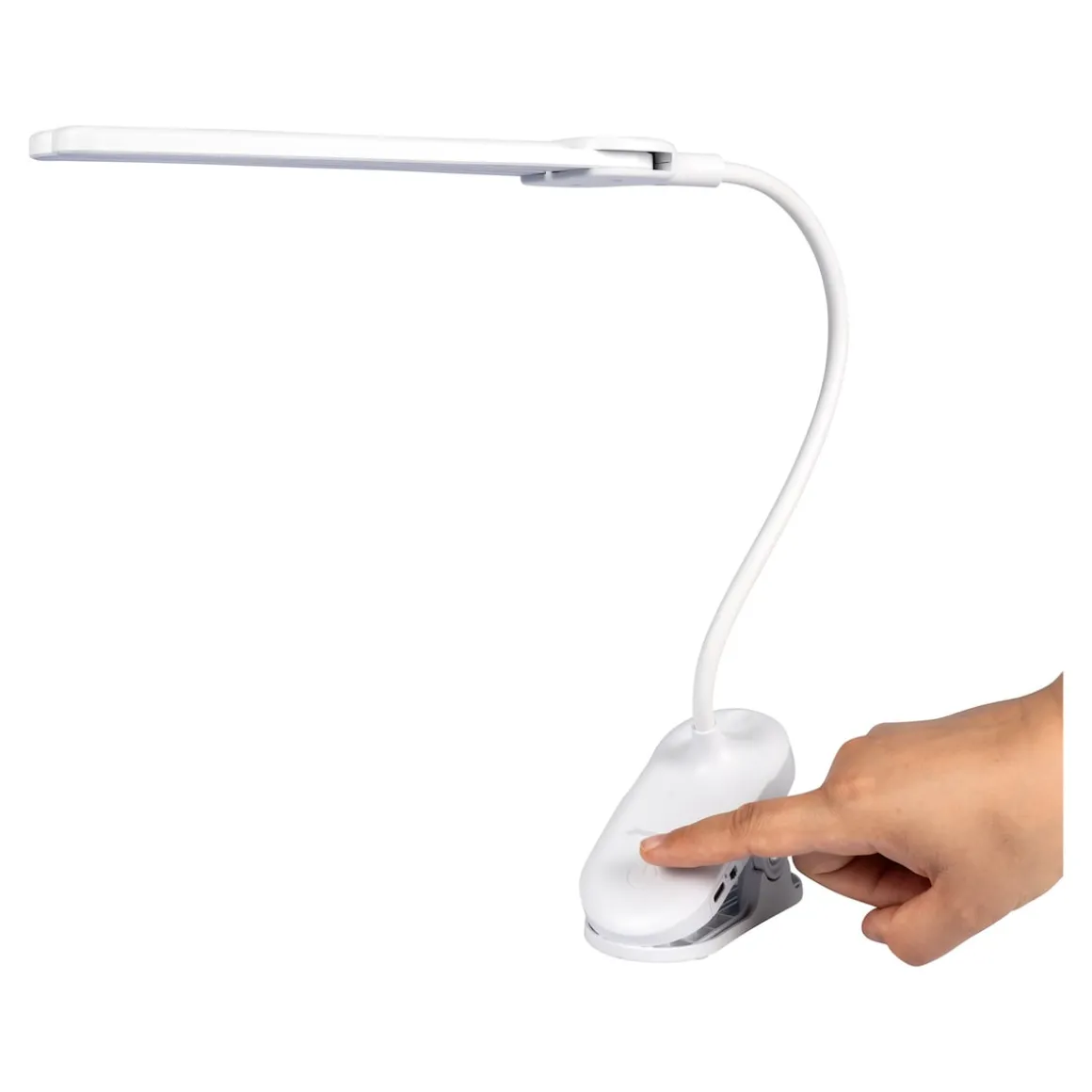 So praktisch: Diese kabellose Klemmleuchte lässt sich mühelos am Tisch, Stuhl, Regal oder Bett befestigen. Der flexible Schwanenhals und die 2 beweglichen Panels bieten punktuelles oder breit gestreutes Licht genau dort, wo es benötigt wird. Mit der Touch-Bedienung können Sie Lichtfarbe und Helligkeit einfach an Ihre Vorlieben anpassen. Aufladbar per USB-Ladekabel (nicht inklusive).