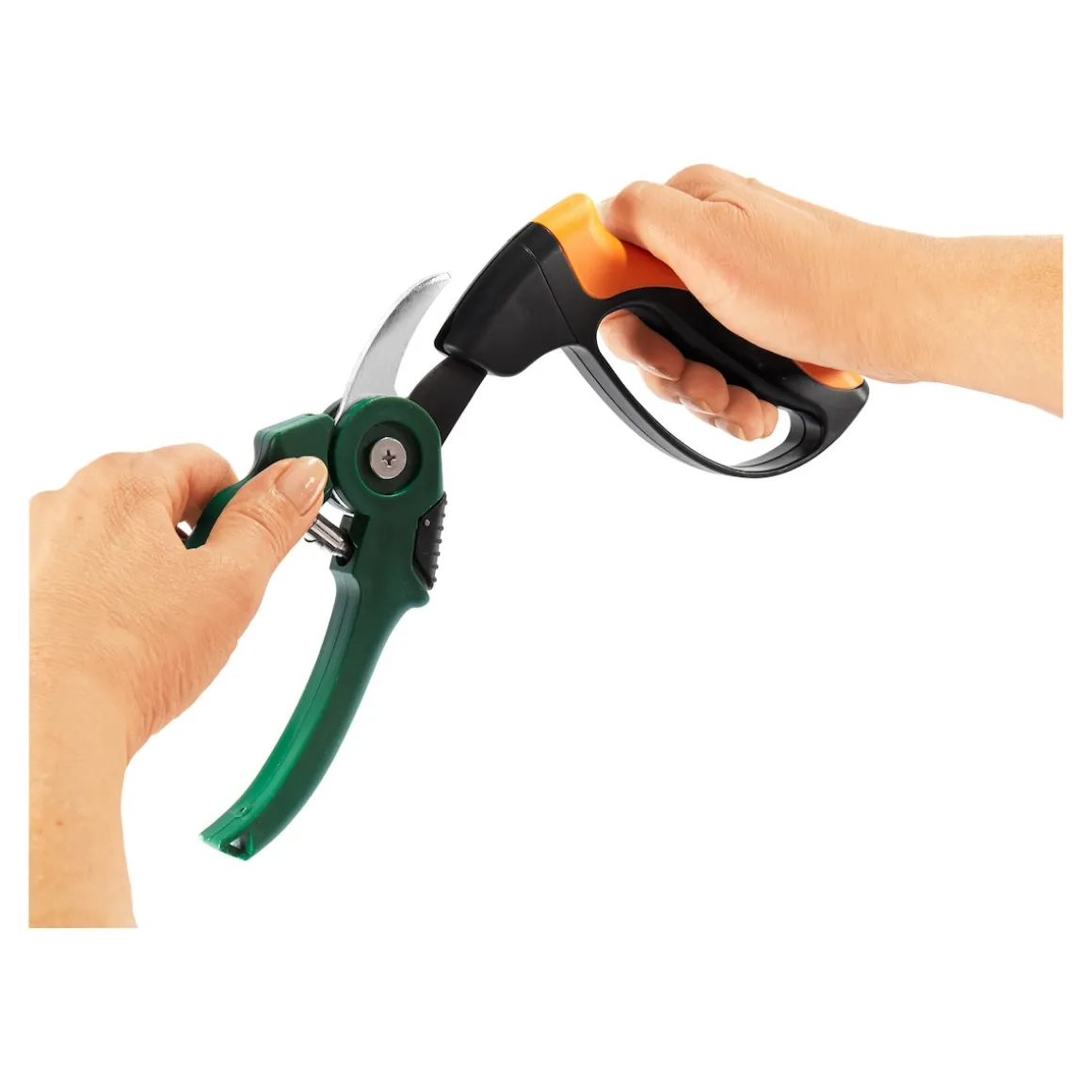 Der hochwertige Klingenschärfer ist ein äußerst nützlicher Helfer, um stumpfe Klingen von Messern, Scheren oder an Gartengeräten sofort wieder einsatzbereit zu machen.