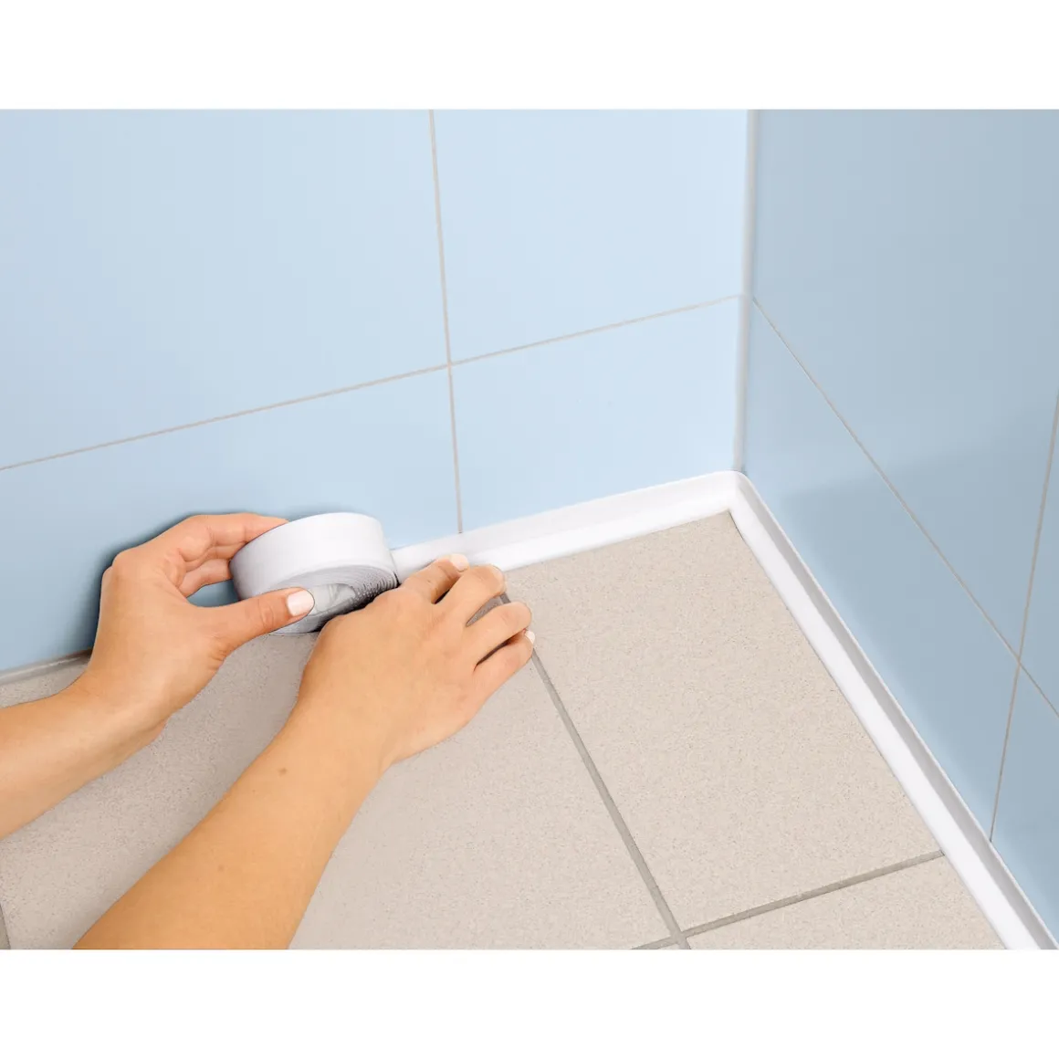 Ob Badewanne, Dusche oder Waschbecken – das Knickwinkelband macht jede Fuge dicht. Dauerelastisch, selbstklebend und einfach anzubringen. Der Knickwinkel sorgt für Spannungsausgleich, die Dichtungslippe macht wasserdicht.