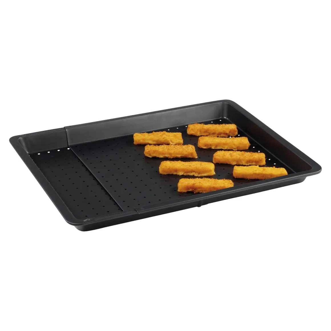Das innovative Backblech garantiert, dass Ihnen Pizza, Ofengemüse und allerlei Gebäck perfekt gelingen. Dank dem durchgehend perforierten Boden kann die heiße Luft besonders gut zirkulieren und sorgt für gleichmäßig knusprige Backergebnisse. Variabel ausziehbar und durch Feststellfunktion leicht zu fixieren. Mit Teflon-Antihaftbeschichtung.