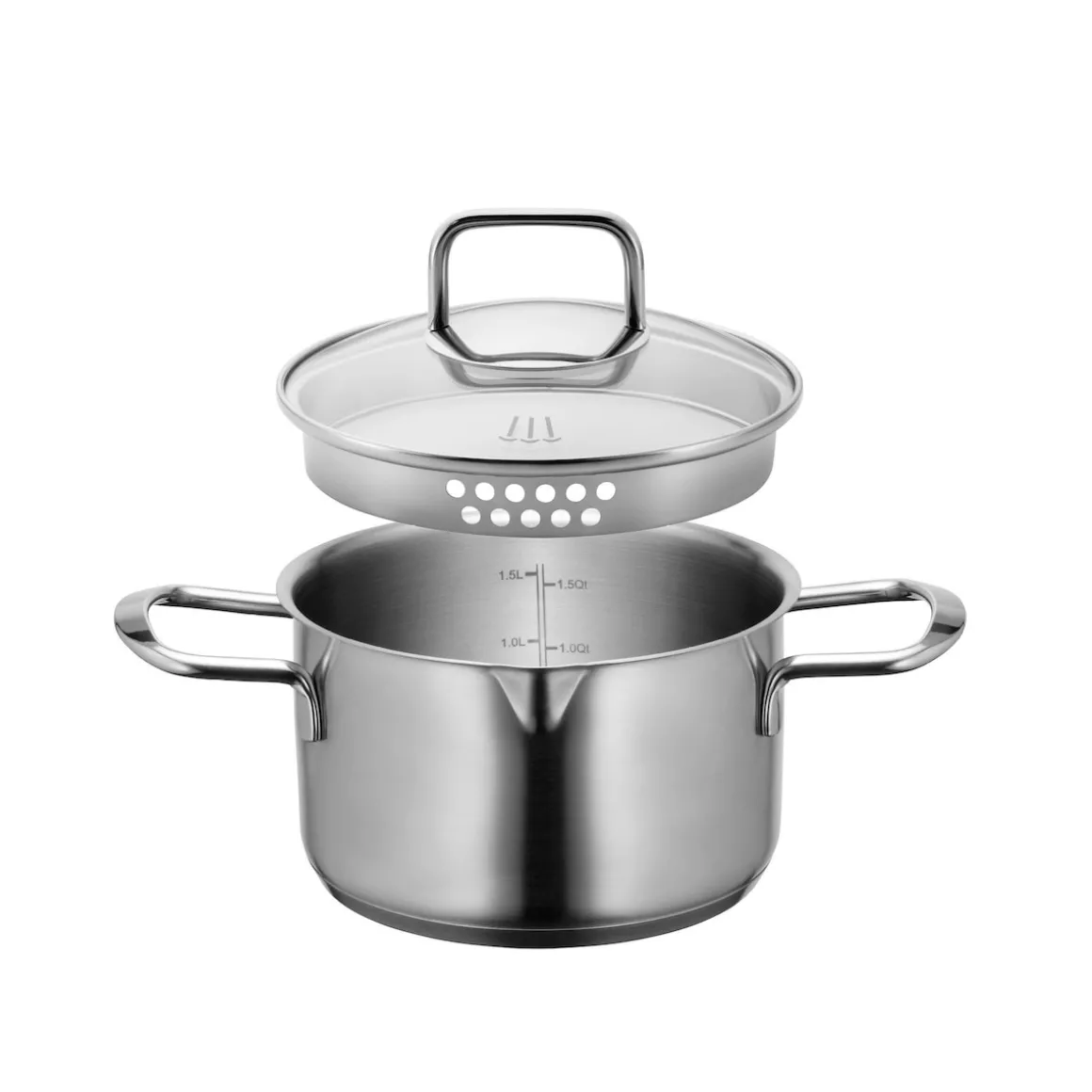 Kochen mit hochwertigem und vor allem gut durchdachtem Kochgeschirr erhöht den Spaßfaktor enorm. Die Kochtopf-Serie Sanvito lässt keine Wünsche offen, wenn es um clevere Kochlösungen auf dem Herd geht. Die Edelstahltöpfe haben einen praktischen Ausgießer und eine Literskala. Garflüssigkeit abmessen vor Kochbeginn und abseihen nach Ende des Kochvorgangs sind damit ganz ohne weitere Hilfsmittel möglich. Durch den robusten Glasdeckel können Sie zu jeder Zeit beobachten, was im Topfinnern passiert.