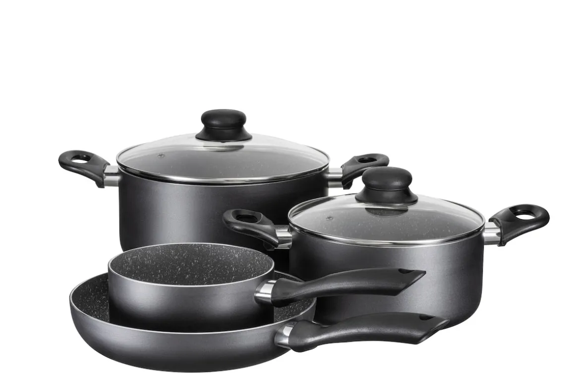 Dieses in jeder Hinsicht praktische Kochgeschirr-Set der österreichischen Traditionsmarke MÄSER punktet mit einer hochwertigen Antihaft-Beschichtung für fettarmes Kochen, einer angenehm leichten Bauweise sowie einem schnell aufheizenden, induktionsgeeigneten Bodenaufbau. Durchdachte Details wie die Aufhängelöcher in den Stielgriffen, die hitzeabweisenden Kunststoffgriffe auch an den Glasdeckeln oder die in die Deckel integrierten Dampfaustrittsöffnungen machen das tägliche Kochen mit dieser Kollektion zum Vergnügen. Der Topfdeckel mit 24 cm Durchmesser kann gleichermaßen für die Bratpfanne genutzt werden. Für eine lange Lebensdauer Ihres Kochsets empfehlen wir die händische Reinigung mit weichen Materialien sowie das Hantieren mit nicht-metallischen Küchenhelfern (z.B. aus Kunststoff oder Holz).