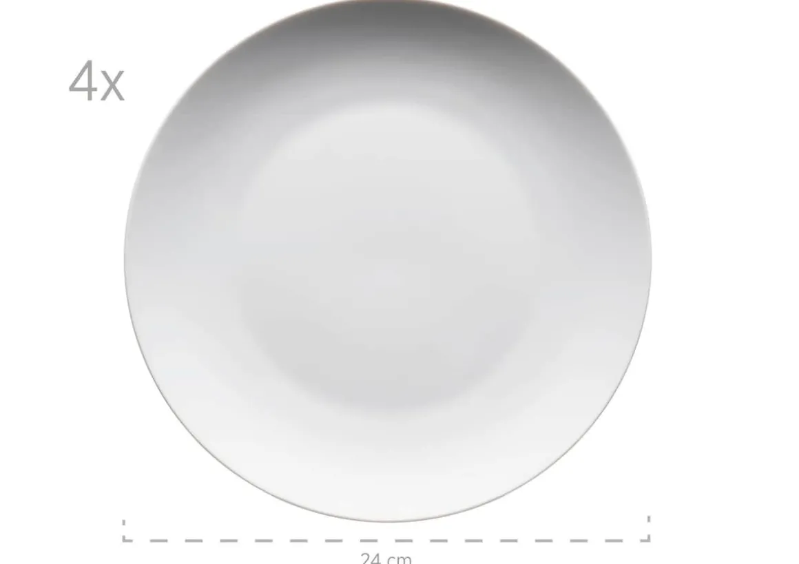 Es braucht nur wenige Handgriffe um einen Tisch so richtig zur Geltung zu bringen. Ein paar Farbkleckse kombiniert mit weißem Porzellan – et voilà: es ist angerichtet! Die Kollektion „Barca“ mit ihrer angesagten schlichten Coupe-Form lässt Platz für Ihre Dekoration und stellt Ihre kulinarischen Kreationen in den Vordergrund. Ob im Alltag oder zu besonderen Anlässen: Barca ist Ihr zeitlos-elegantes Porzellangeschirr, das Sie über viele Jahre begleiten wird. Das Geschirrservice ist dauerhaft spülmaschinen- und mikrowellengeeignet, und dadurch äußerst pflegeleicht. Dieses Geschirrset wird in einer speziell für dieses Service entwickelten, auf Bruchsicherheit getesteten Transportverpackung aus umweltschonenden Materialien versendet. Bitte beachten Sie: Um eine objektive Vergleichbarkeit zu gewährleisten, beziehen sich unsere Füllmengenangaben immer auf eine randvolle Befüllung. Der Umwelt zuliebe verzichten wir auf ein Umwickeln jedes einzelnen Geschirrteils mit Folie – bitte spülen Sie das Kombiservice vor dem ersten Gebrauch, um mögliche Staubspuren zu entfernen.