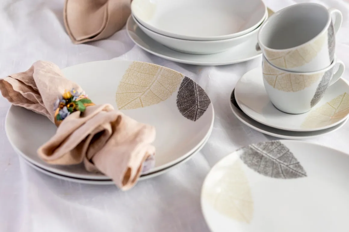 Die Porzellangeschirr-Serie JONAS der österreichischen Traditionsmarke MÄSER präsentiert sich mit einem großflächigen, feingliedrigen Blätterdekor auf modernen randlosen Formen. Verspielt und dennoch elegant, klassisch und zugleich modern – die Schönheit dieser Kollektion ergibt sich aus der Verbindung von traditionellen und topaktuellen Design-Elementen. Dieses Kombiservice für 6 Personen bietet eine Ihnen solide Ausstattung für den Einsatz vom Frühstück über den Nachmittagskaffee bis hin zum dreigängigen Dinner. Alle Teile sind dauerhaft spülmaschinen- und mikrowellengeeignet, und dadurch äußerst pflegeleicht. Die in den Fotos angegebenen Füllmengen beziehen sich aus Gründen der Vergleichbarkeit auf eine Befüllung bis zum oberen Gefäßrand, bei den Abmessungen handelt es sich um Außenmaße.