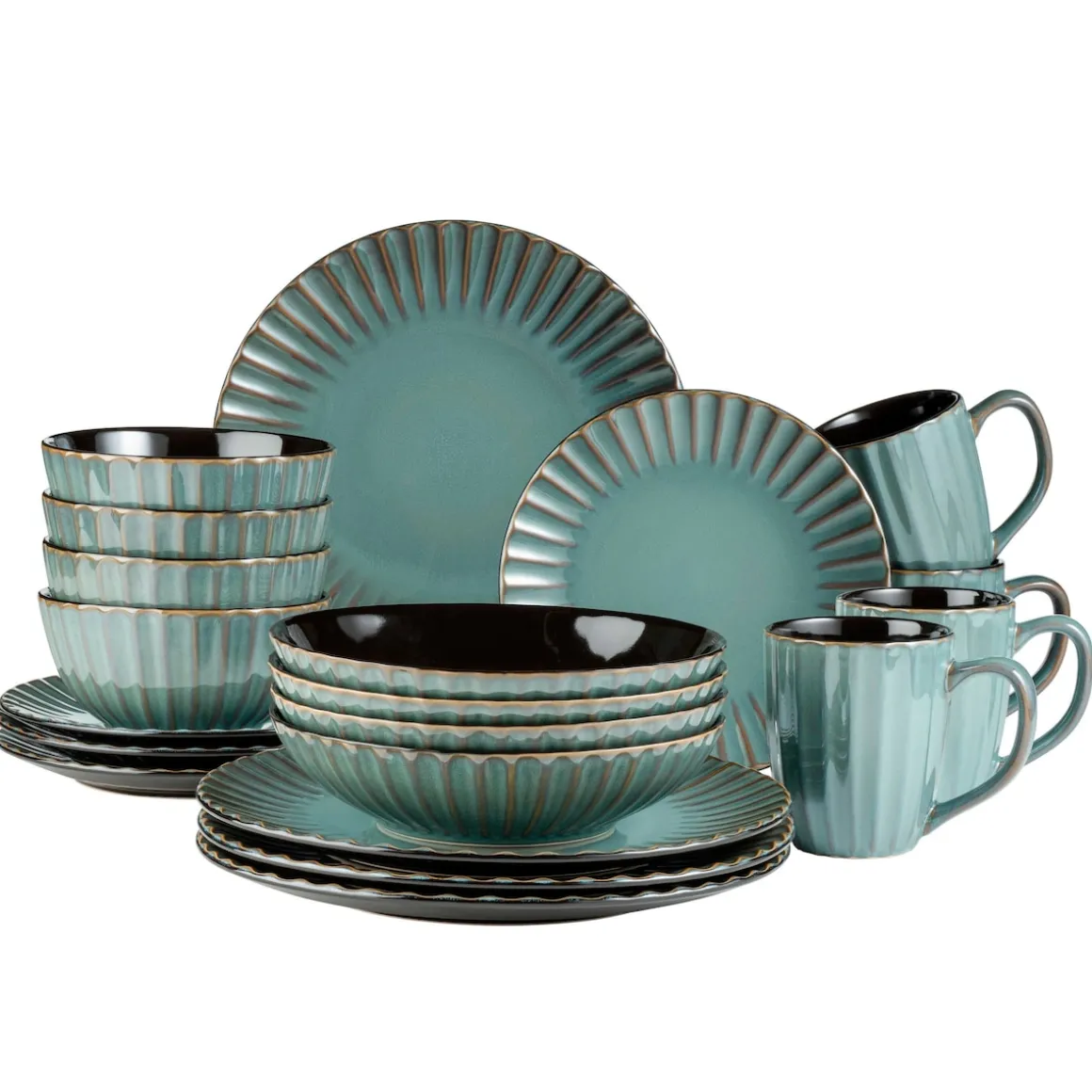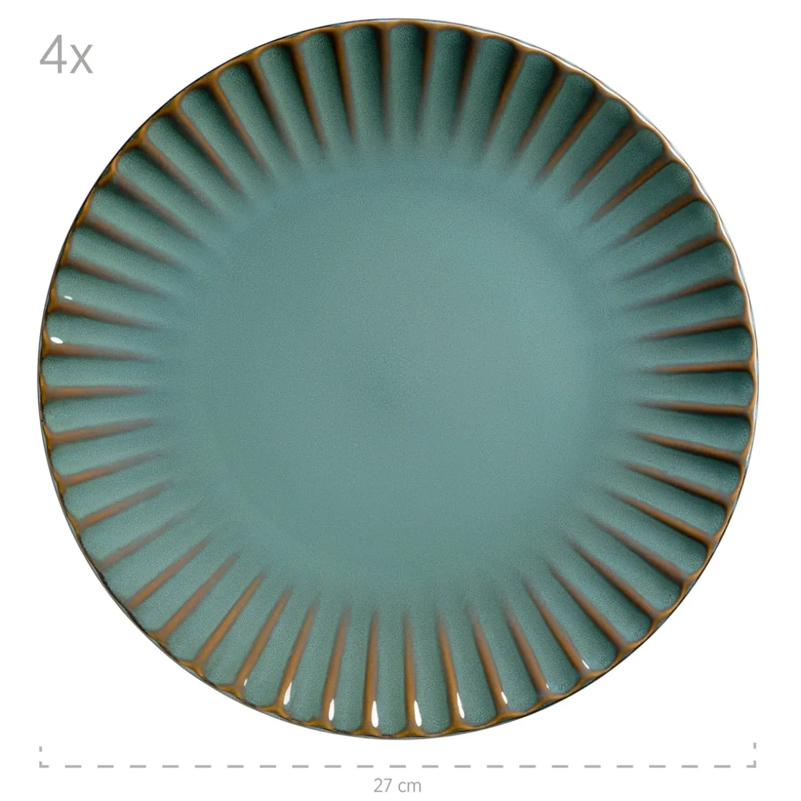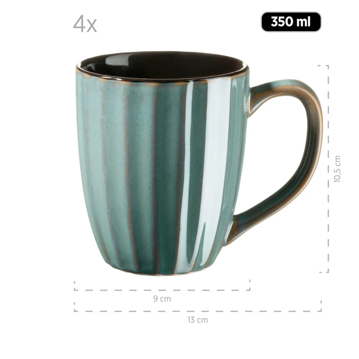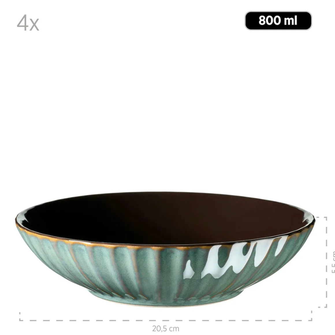 Die aufregende Kombination aus runden Retro-Formen mit Wellenrelief einerseits und einer modernen, unregelmäßigen Glasurtechnik mit schwarzen Akzenten andererseits verleiht der Tafelgeschirr-Kollektion „Confino“ eine ganz besondere Eleganz. Die Keramikgeschirr-Serie der österreichischen Traditionsmarke MÄSER wird aus hochwertigem Steinzeug gefertigt, welches nicht mit dem deutlich brüchigeren Steingut zu verwechseln ist. Die natürlich wirkenden Farbvarianten dieser Kollektion lassen sich harmonisch miteinander kombinieren. Dieses Set wird in einer vielfach auf Bruchsicherheit getesteten Paketversandverpackung aus nachhaltigen Materialien versendet. Bitte beachten Sie: Diese Kollektion wird händisch bunt lasiert, wodurch minimale Unebenheiten der Glasur, kleine Einschlüsse und leichte Farbabweichungen auftreten können. Zur besseren objektiven Vergleichbarkeit gehen unsere Füllmengenangaben von einer randvollen Befüllung aus.