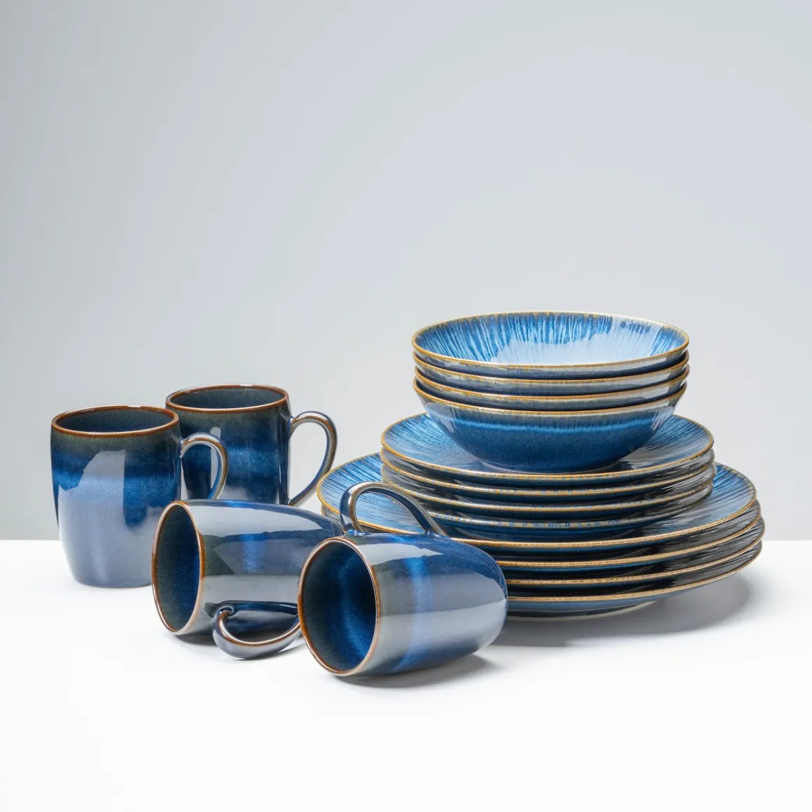 Diese faszinierende Verwandlung ist Vorbild für die Kollektion Eisfall: Weiß- und Blautöne in unterschiedlichen Schattierungen fließen grazil und haptisch fühlbar über einen an Gneis angelehnten naturbraunen Untergrund. Im Zentrum der dezent geschwungenen Teller und Schalen liegt ein klarer blauer See, welchem von unzähligen Farbsprenkeln Leben eingehaucht wird. Jedes Stück aus dieser Kollektion ist ein einmaliges Kunstwerk.