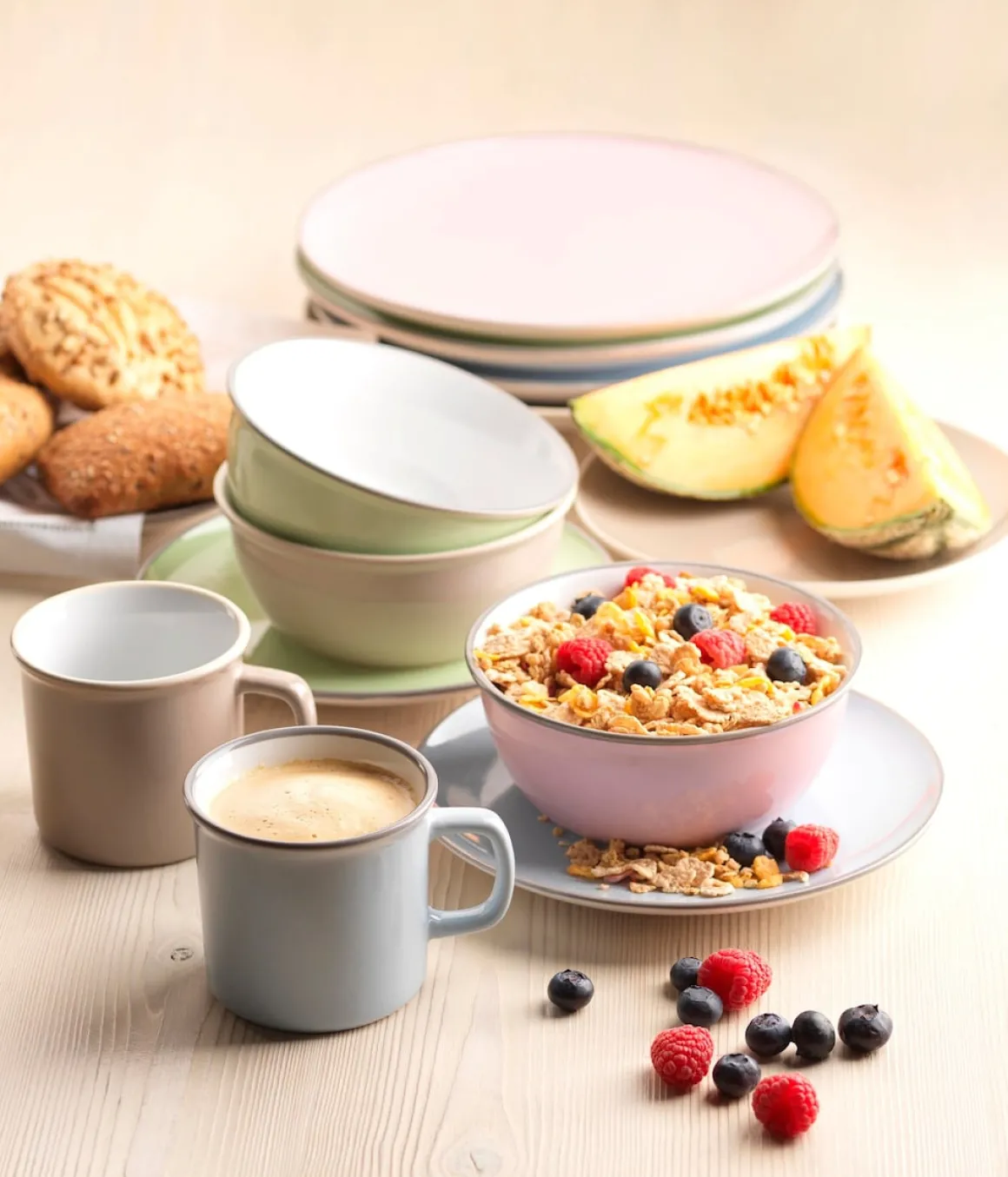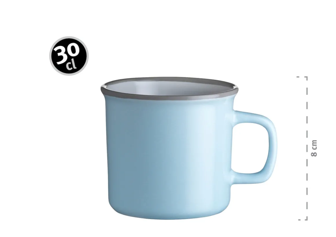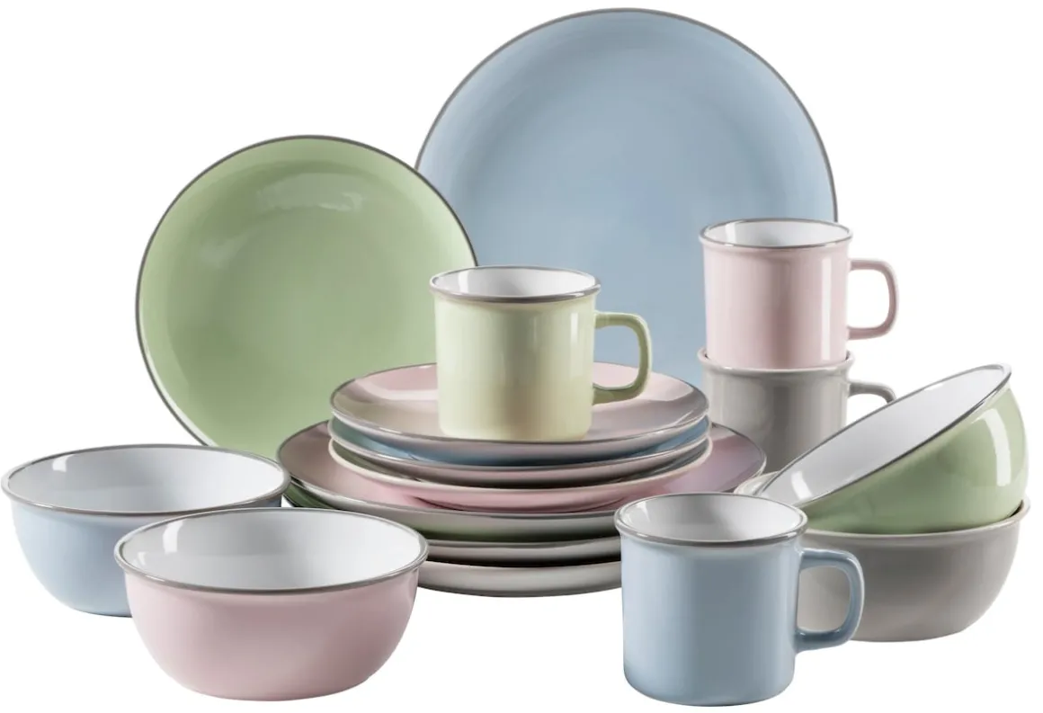 Modern, bunt und rustikal zugleich: Die Keramik-Geschirr-Serie Maila der Marke MÄSER bringt den angesagten Vintage-Look auf Ihren Esstisch. Herbstliche frische Farben und originelle, an traditionelles Emaille-Geschirr angelehnte Formen sorgen für gute Laune, der dunkel abgesetzte Rand zugleich für klare Linien. Je nach Stimmung und Bedarf kombinieren Sie mit Maila die vier sorgfältig aufeinander abgestimmten verfügbaren Farben altrosa, dunkelblau, petrol und beige zu einem harmonischen Ensemble.