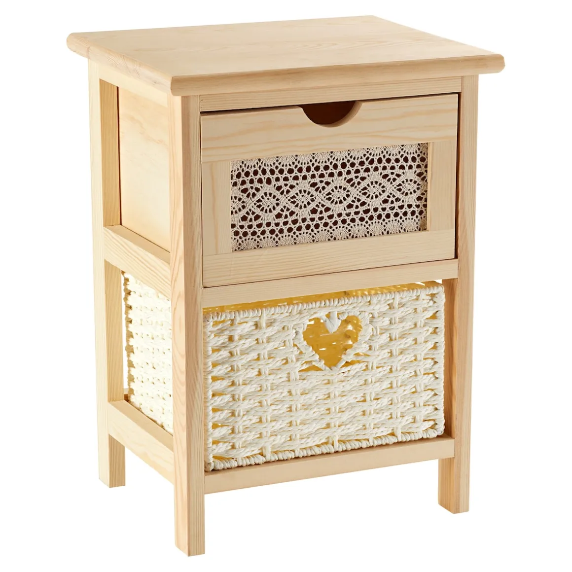 Mit dieser Kommode zieht Romantik in Ihr Zuhause ein! Das praktische wie dekorative Möbelstück überzeugt bis ins letzte Detail: Die stimmige Kombination aus edlem Holzrahmen, Häkelmusterverzierten Schubladenblenden und geflochtenen Korbfächern sorgt für eine charmant natürliche Optik. Ein ganz besonderer Aufbewahrungsort für Dinge, die Ihnen am Herzen liegen. In 3 Größen mit 2, 4 oder 6 Schubfächern. o.g. Artikel wird ohne eine Aufbauanleitung oder eine Gebrauchsanleitung geliefert.