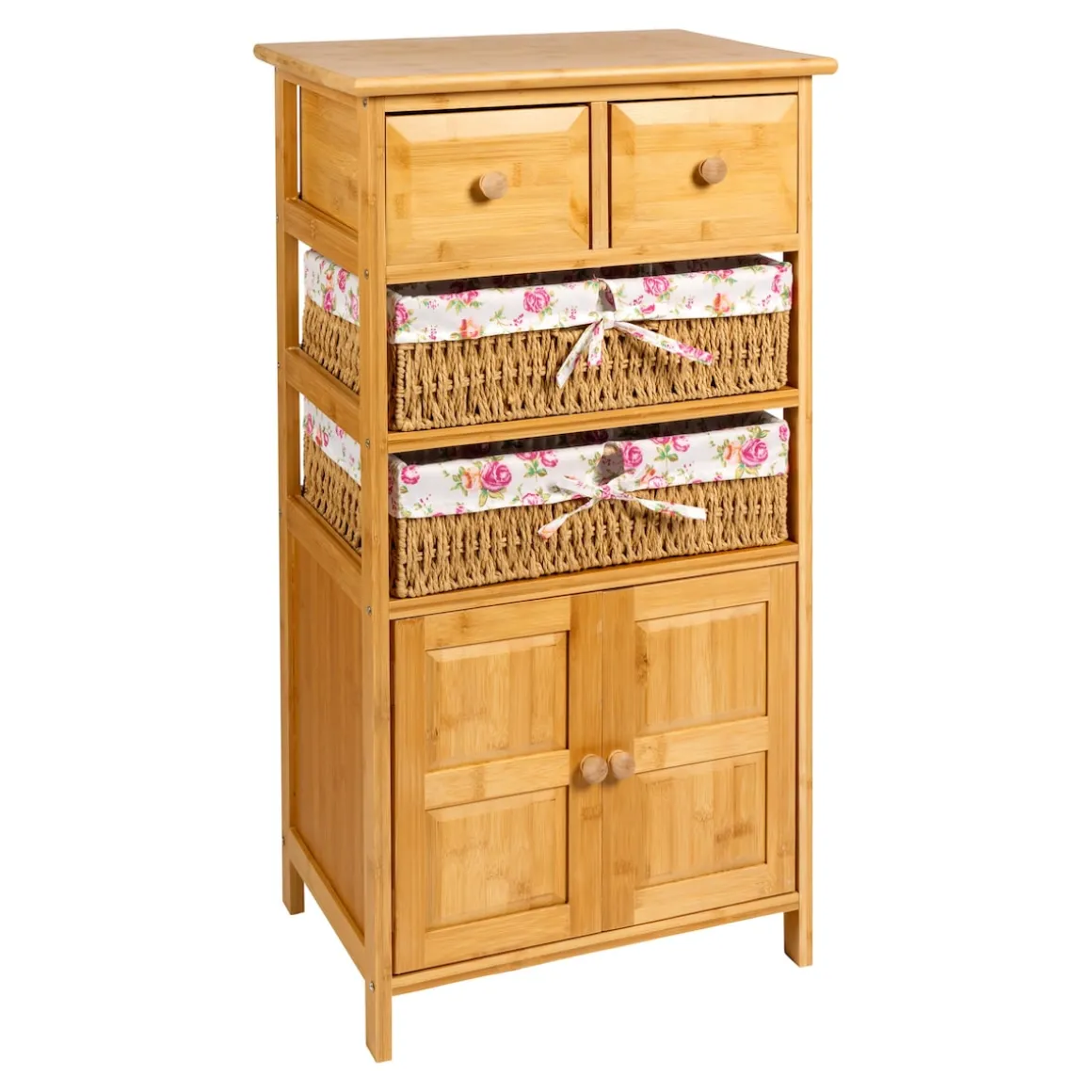 Erwecken Sie mit dieser Kommode den Charme vergangener Zeiten in Ihrem Zuhause. In den Fächern und Körben mit romantischen Rosenmusterbezügen sind Ihre Lieblingsstücke nicht nur stilvoll aufbewahrt, sondern auch jederzeit griffbereit. Bezüge waschbar bei 30 °C.